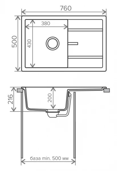 Размер мойки 76 x 50 см