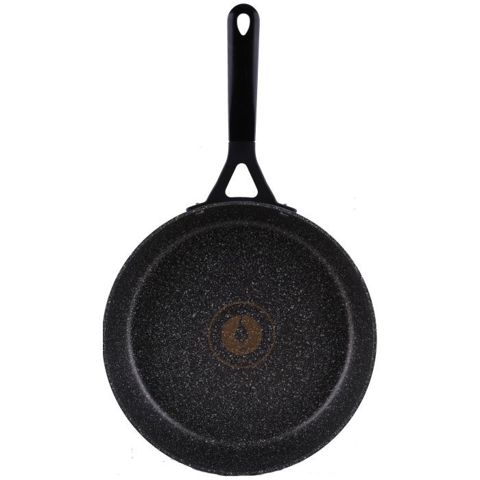 Виготовлена з кованого алюмінію, з товщиною стінок 4 мм, ця сковорода нагрівається швидко та максимально рівномірно. Це значно прискорює приготування їжі, а також перешкоджає пригорянню і нерівномірному просмажуванню продуктів.