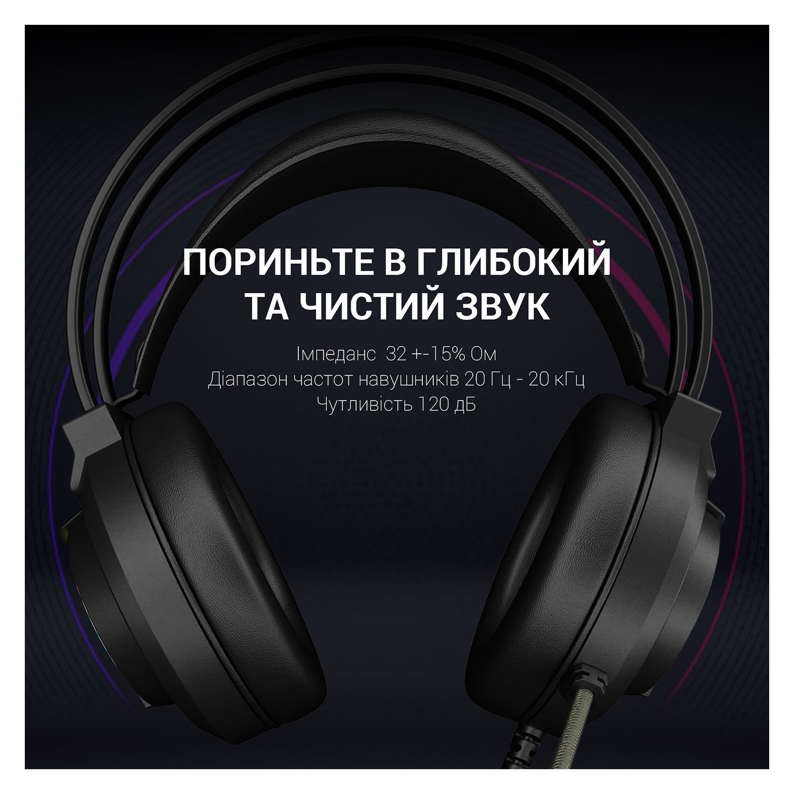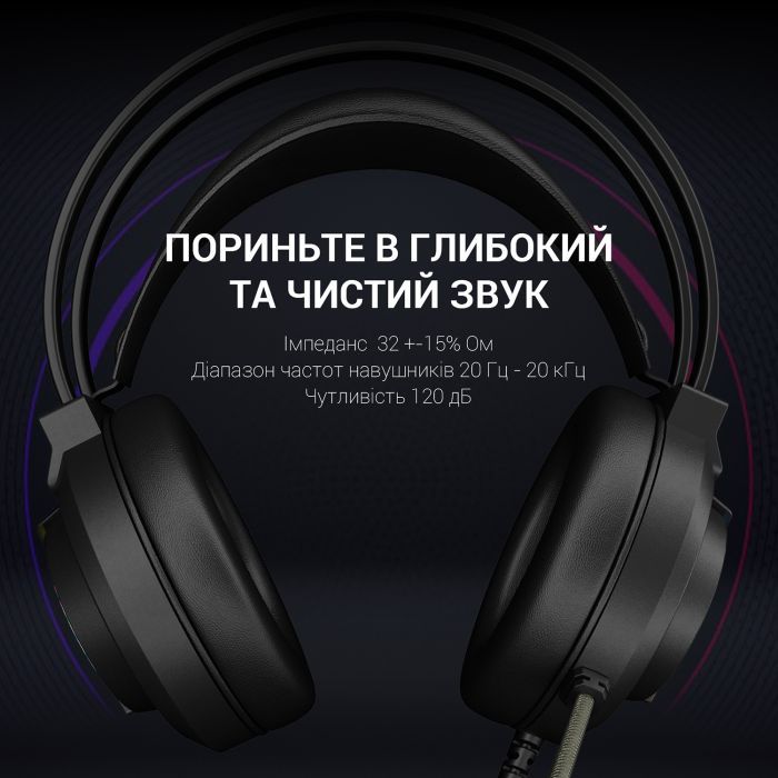Оцініть по-справжньому потужне і деталізоване звучання в комп'ютерних іграх і під час перегляду мультимедійного контенту. Гарнітура може похвалитися відтворенням звуку в широкому діапазоні частот від 20 до 20 000 Гц і чутливістю випромінювачів на рівні 120 дБ ± 3 дБ. Такі параметри роблять навушники конкурентним рішенням у своєму класі.