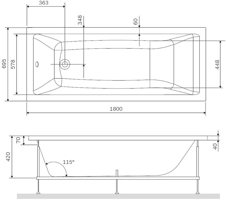 Ванна акриловая AM.PM Gem W93A-180-070W-A 180x70 белая