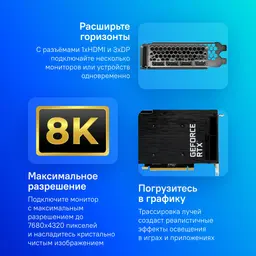 • Поддержка технологий NVIDIA NVIDIA DLSS, NVIDIA Reflex, NVIDIA STUDIO, NVIDIA Ray Tracing, NVIDIA G-Sync, NVIDIA Broadcast, NVIDIA Game Ready, NVIDIA Shadow Play, NVIDIA Ansel, NVIDIA Freestyle, NVIDIA NVENC, NVIDIA VR Works, NVIDIA CUDA