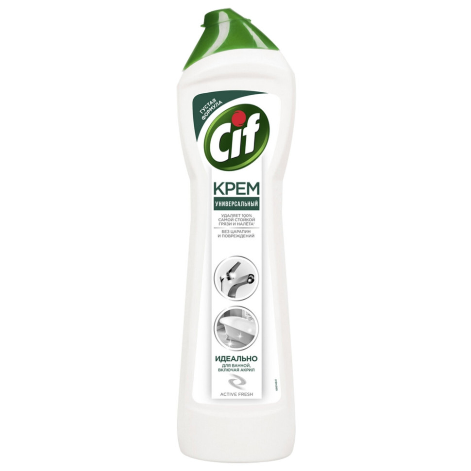 Заводская упаковка нарушена или отсутствует. Товар НОВЫЙ, в полной комплектации. / Сиф – эксперт в очищении с заботой о поверхности. Благодаря уникальной формуле, крем CIF эффективно справляется даже с сильными загрязнениями, не повреждая обрабатываемую поверхность. Форма выпуска: крем. Объем/вес: 500 мл/г. Эффект от использования: очищение поверхности, удаление жира и въевшейся грязи, удаление ржавчины. Подходит для поверхностей: акрил, кафель, фаянс, хром, эмаль. Отдушка: свежесть. Содержит: хлор. pH: 8. Дозатор: классический. Упаковка: бутыль Бренд - CIF. Производитель - Россия. . Штрихкод - 8717163044711