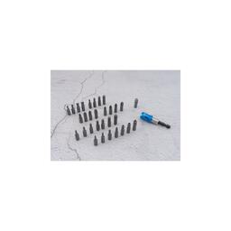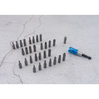 • Розміри біт H3 , T20 , H4 , H5 , H6 , T40 , T27 , TR10 , TR15 , TR20 , TR25 , TR30 , TR40 , TR27 , SL3 , T30 , T25 , T15 , T10 , SL6 , SL4 , SL5 , PZ3 , PZ2 , PZ1 , PH3 , PH2 , PH1