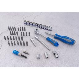 • Комплектація набору біти , тримач для біт , тріскачка , подовжувач , кардан шарнірний , торцеві головки