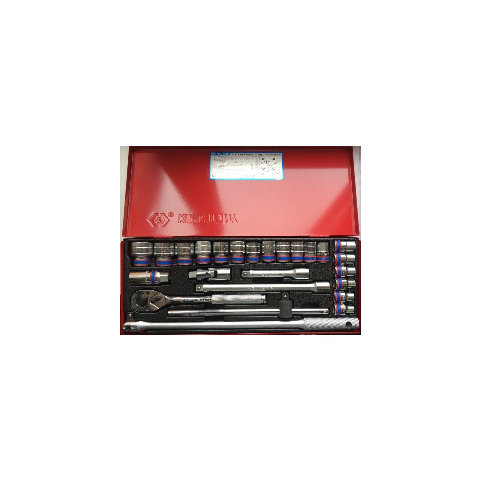 - Комплектація набору торцеві головки , тріскачка , подовжувач , вороток , кардан шарнірний , головки для свічок запалювання