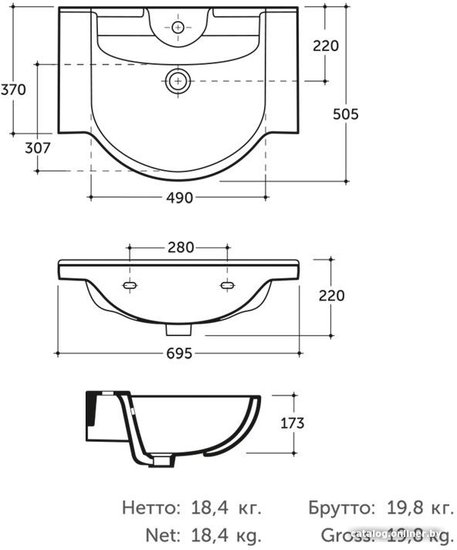 - Ширина 69.5 см