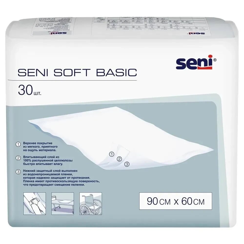 Пеленки впитывающие SENI Soft Basic 90см х 60см, 30 шт