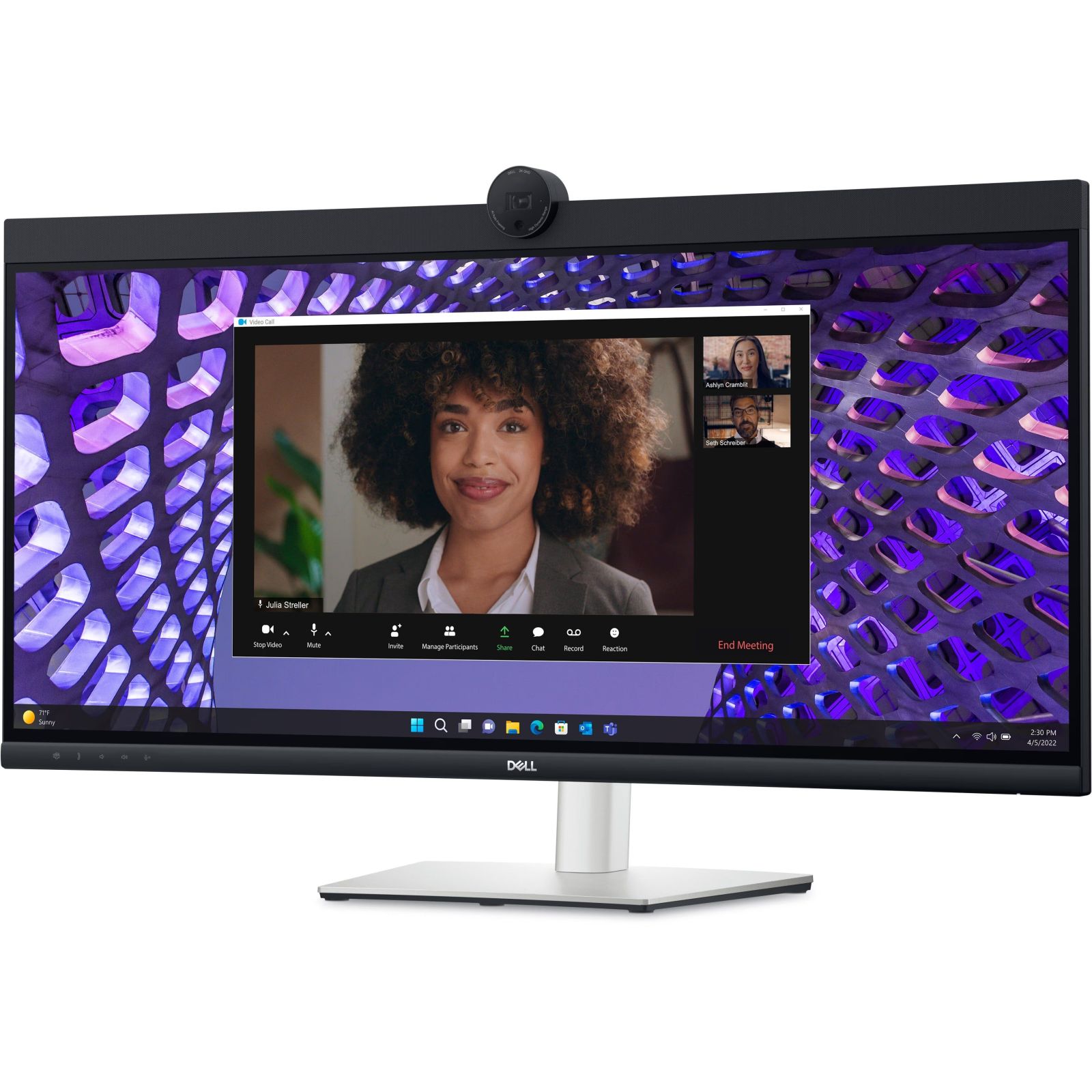 Голосно та чітко: Співпрацюйте так, наче ви перебуваєте поруч, завдяки вбудованим подвійним мікрофонам із функцією луноприглушення та подвійним динамікам потужністю 5 Вт, стратегічно розміщеним у верхній частині монітора для створення захопливого звукового враження.