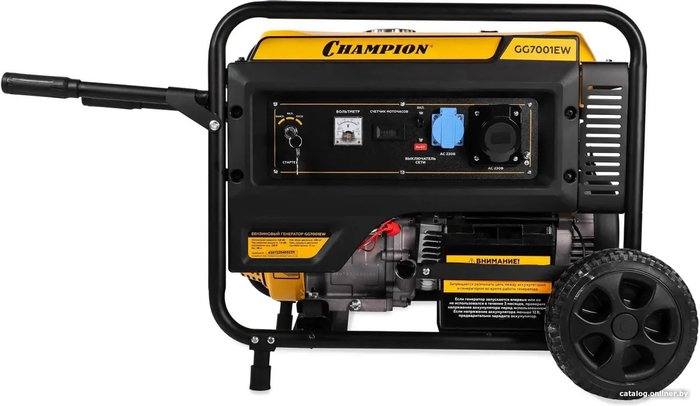 • Комплектация Генератор, ключ свечной, вилка кабельная 2 шт, руководство по эксплуатации, амортизатор рамы с крепежом, рукоятка транспортировочная с крепежом 2 шт, колесо транспортировочное с крепежом 2 шт, опора рамы с крепежом 2 шт, ключ замка зажигания - 2 шт, аккумулятор, упаковка.