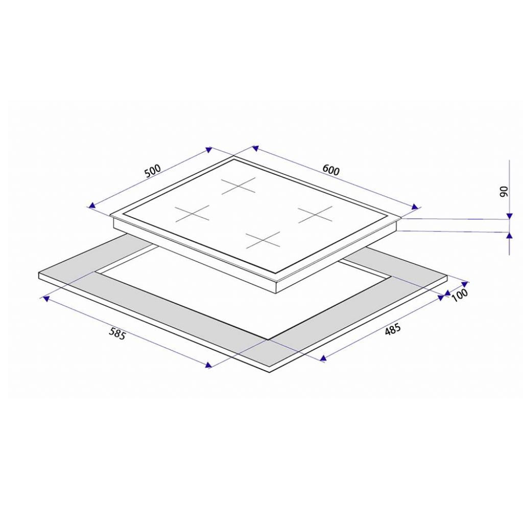 • Диаметр и мощность конфорок Задняя левая 1.5 кВт, Задняя правая 1.65 кВт, Передняя левая 2.2 кВт, Передняя правая 0.9 кВт