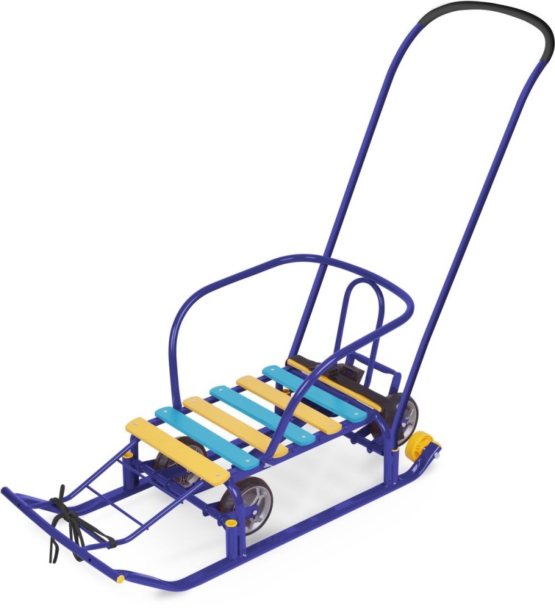 - Высота 18 см (по сиденью в положении на полозьях, в положении на колесах 23 см, до ручки 93 см и 98.5 см соответственно)