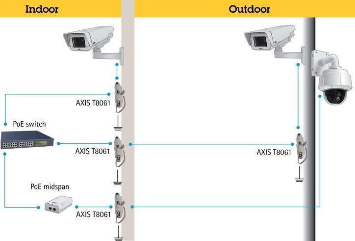 стабилизатор напряжения, защищает сети Ethernet от грозовых перенапряжений, вызванных проникающих через кабель Ethernet, заключен в всепогодном металлическом корпусе со степенью защиты IP66, настенный монтаж