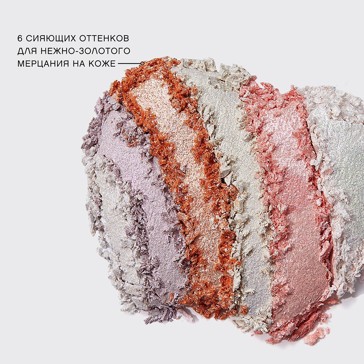В хайлайтере есть шесть сияющих оттенков: смешай их все, чтобы создать нежно-золотое мерцание на коже, подчеркнуть свое внутреннее сияние и разрушить этим светом все злые чары вокруг.
