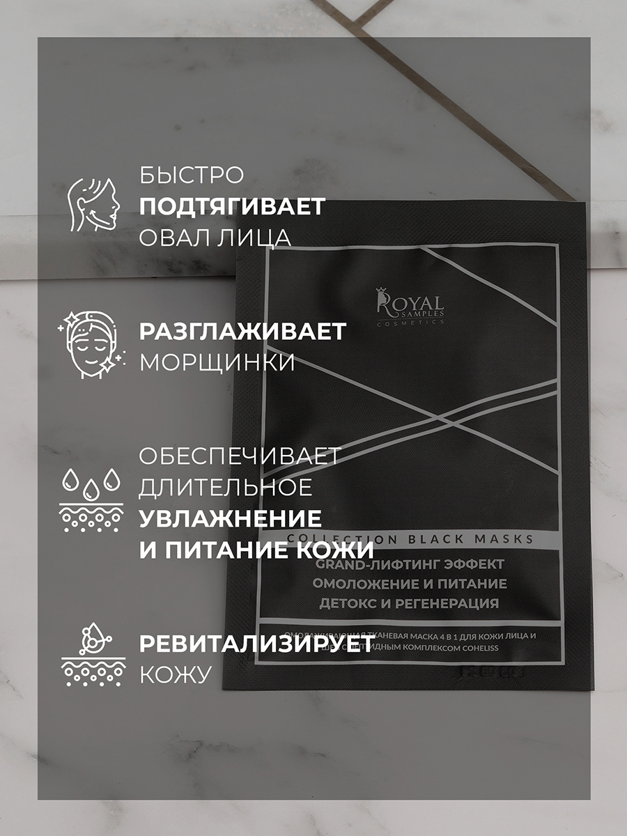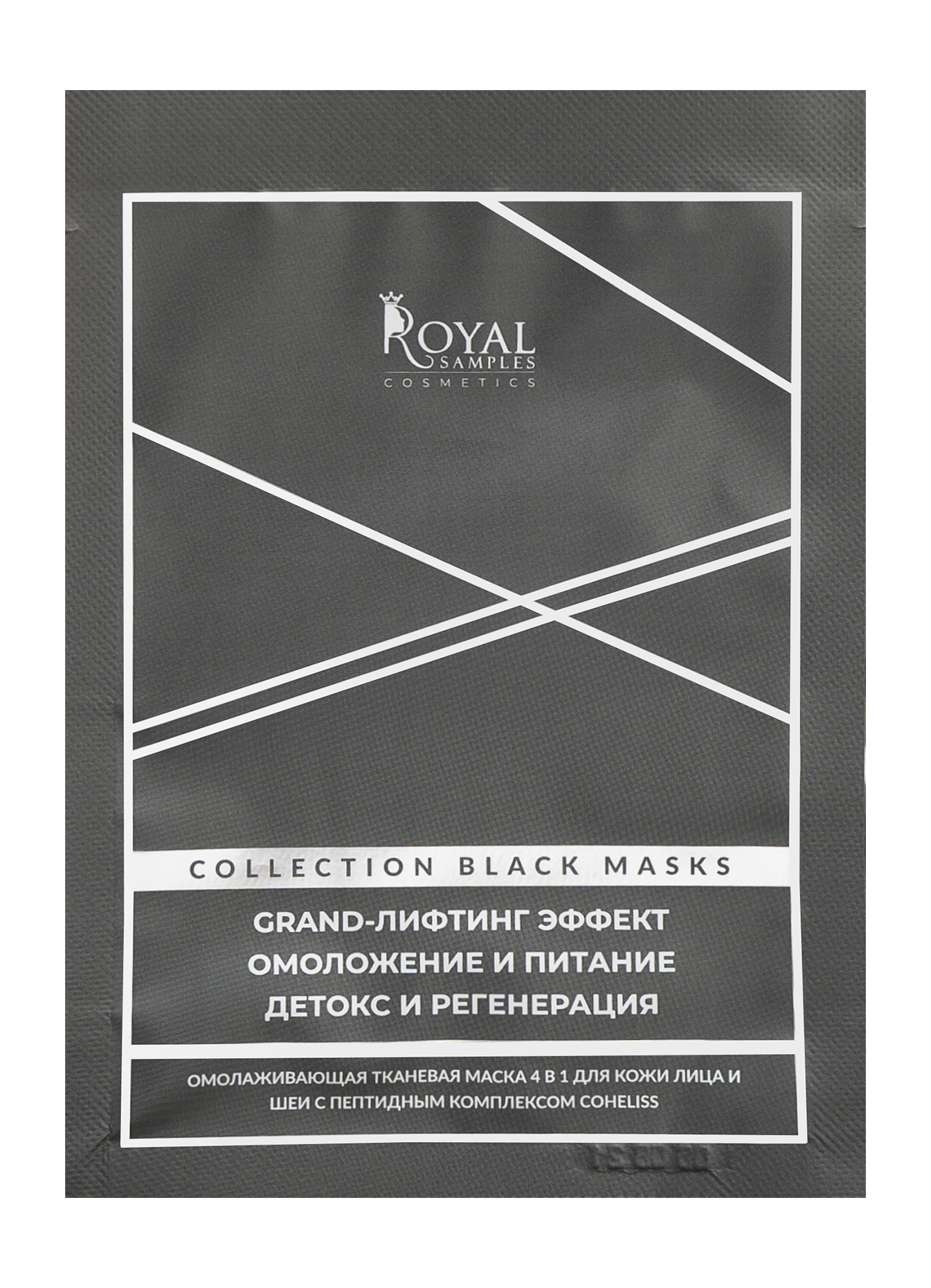 Royal Samples Collection Black Masks Grand Омолаживающая тканевая маска для лица и шеи с пептидным комплексом