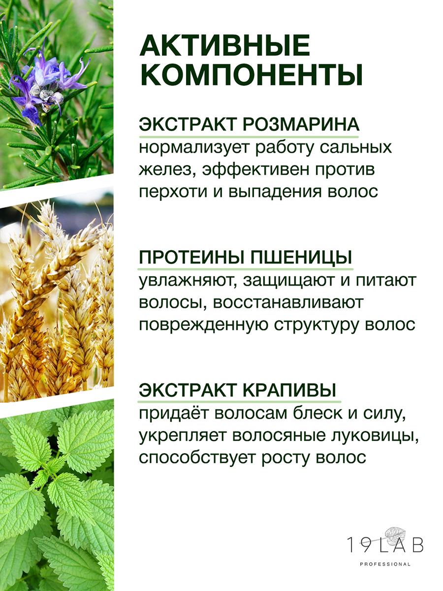 • Экстракт розмарина, известный своими полезными свойствами, укрепляет корни волос и регулирует жирность, дарит блеск и природную эластичность
