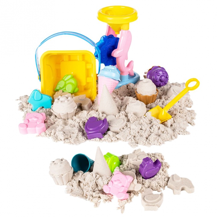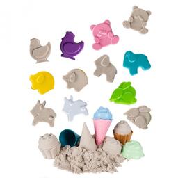 Вместе с большим песочным набором от белорусского бренда Fancy Baby ваш кроха сможет затеять стройку, игру в пекаря и многое другое, что только захочет! Строить песочные замки и целые комплексы, лепить любимых зверюшек (котика, зайчика, коровку, курочку, свинку или собачку), играть в маленького кондитера или магазин мороженого - все это и еще много других игровых сценариев, которые ребенок с радостью воплотит в песочнице, пользуясь данным игровым набором для песка.