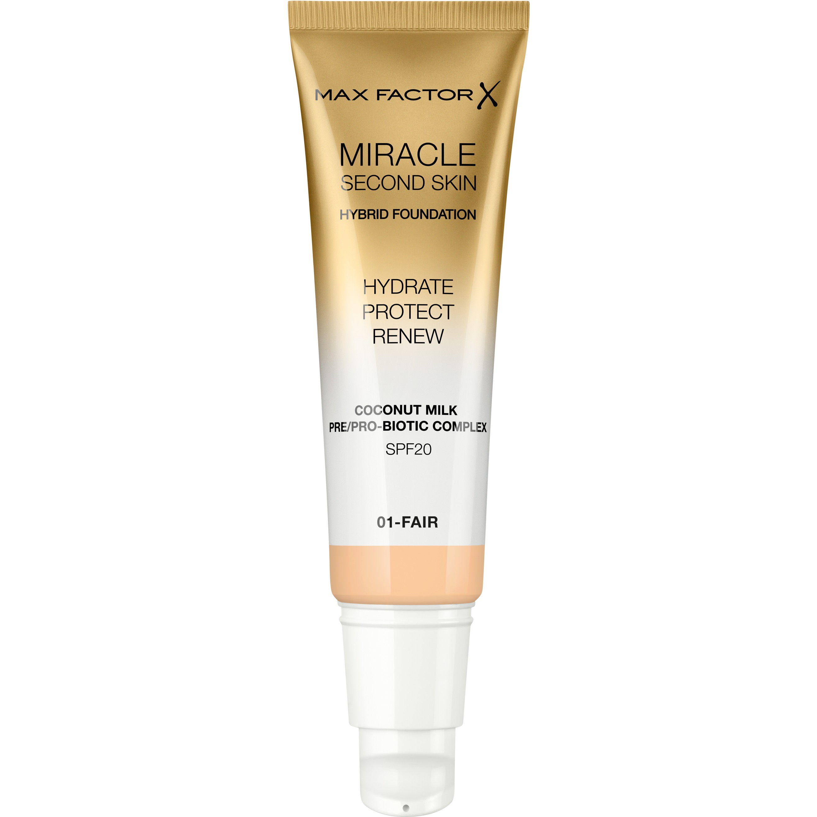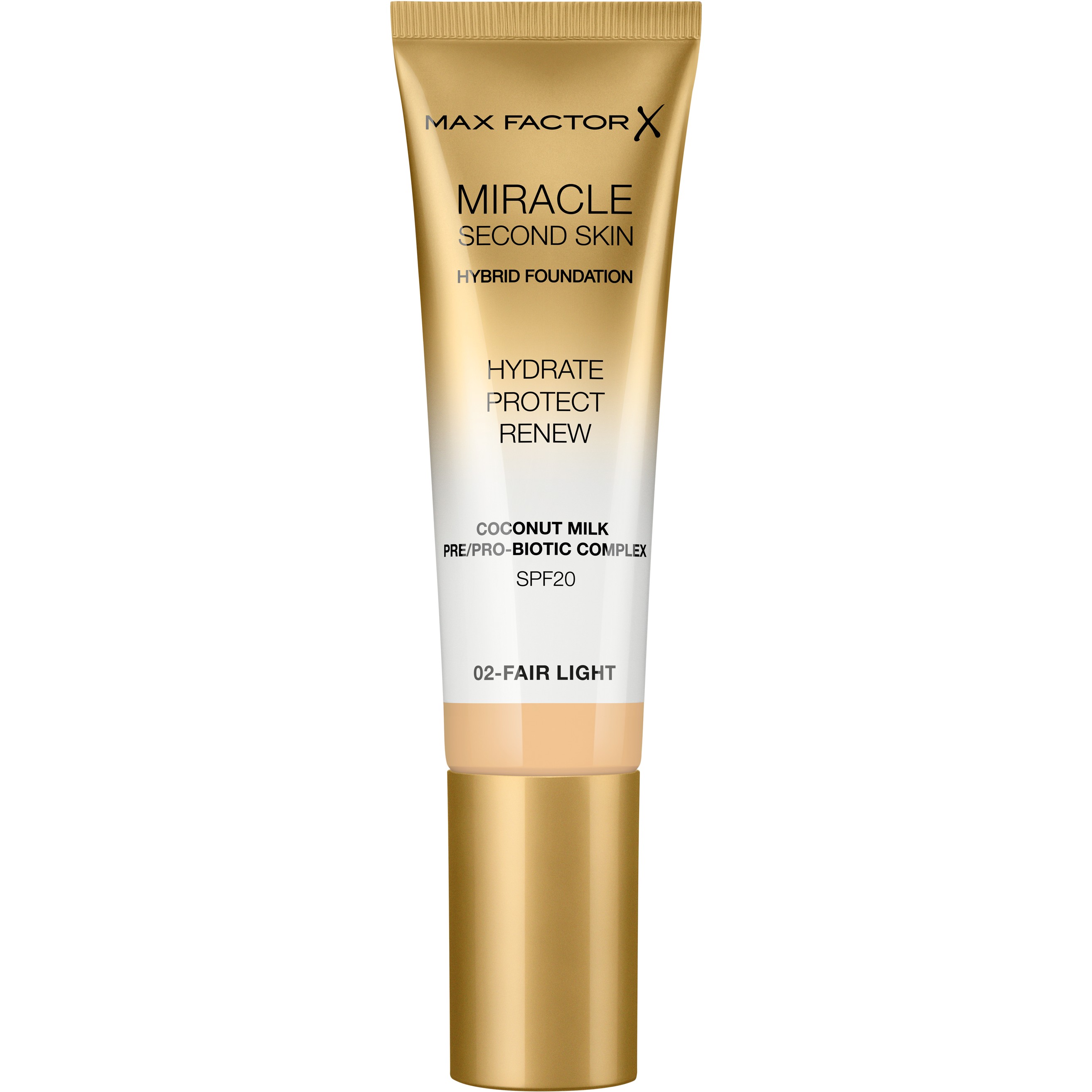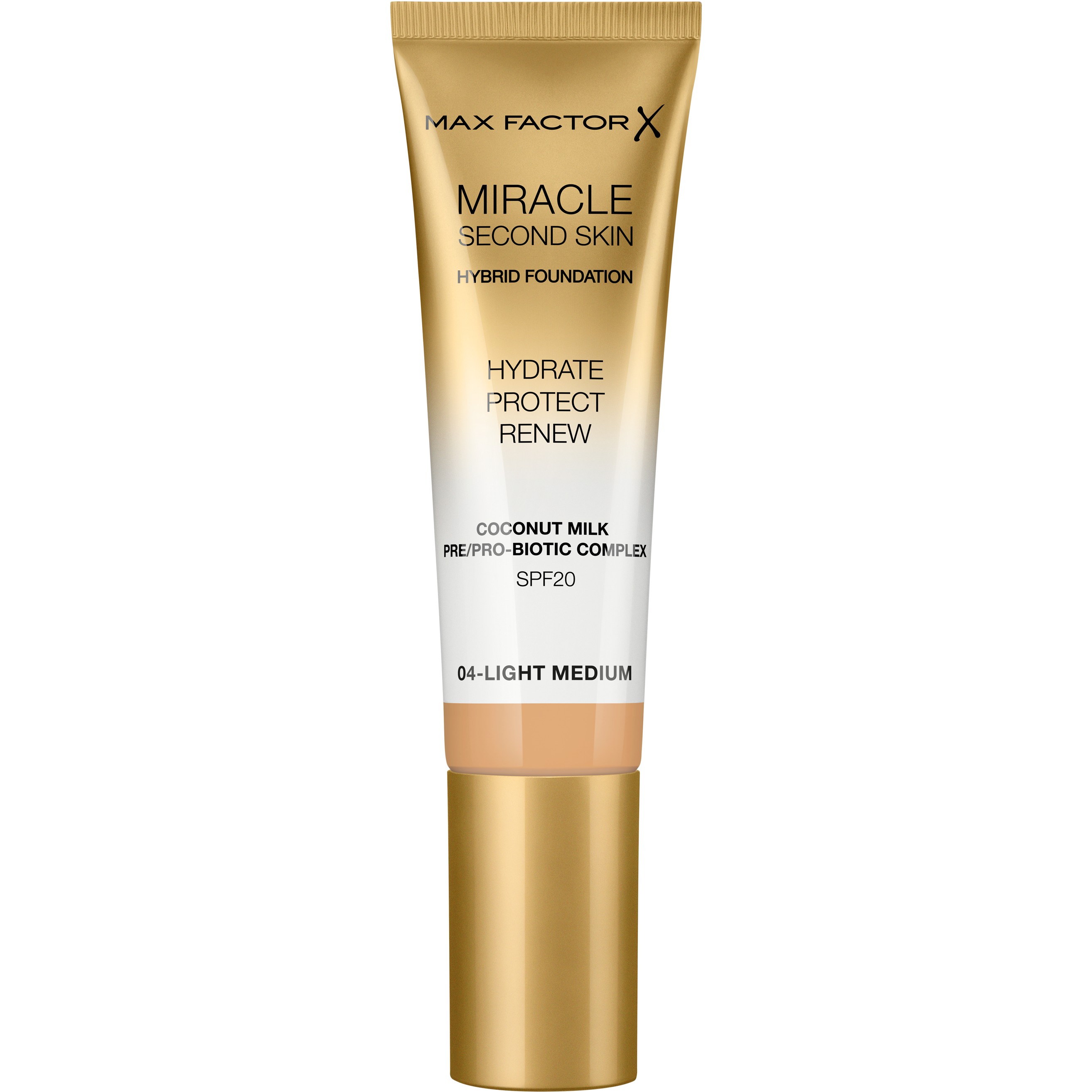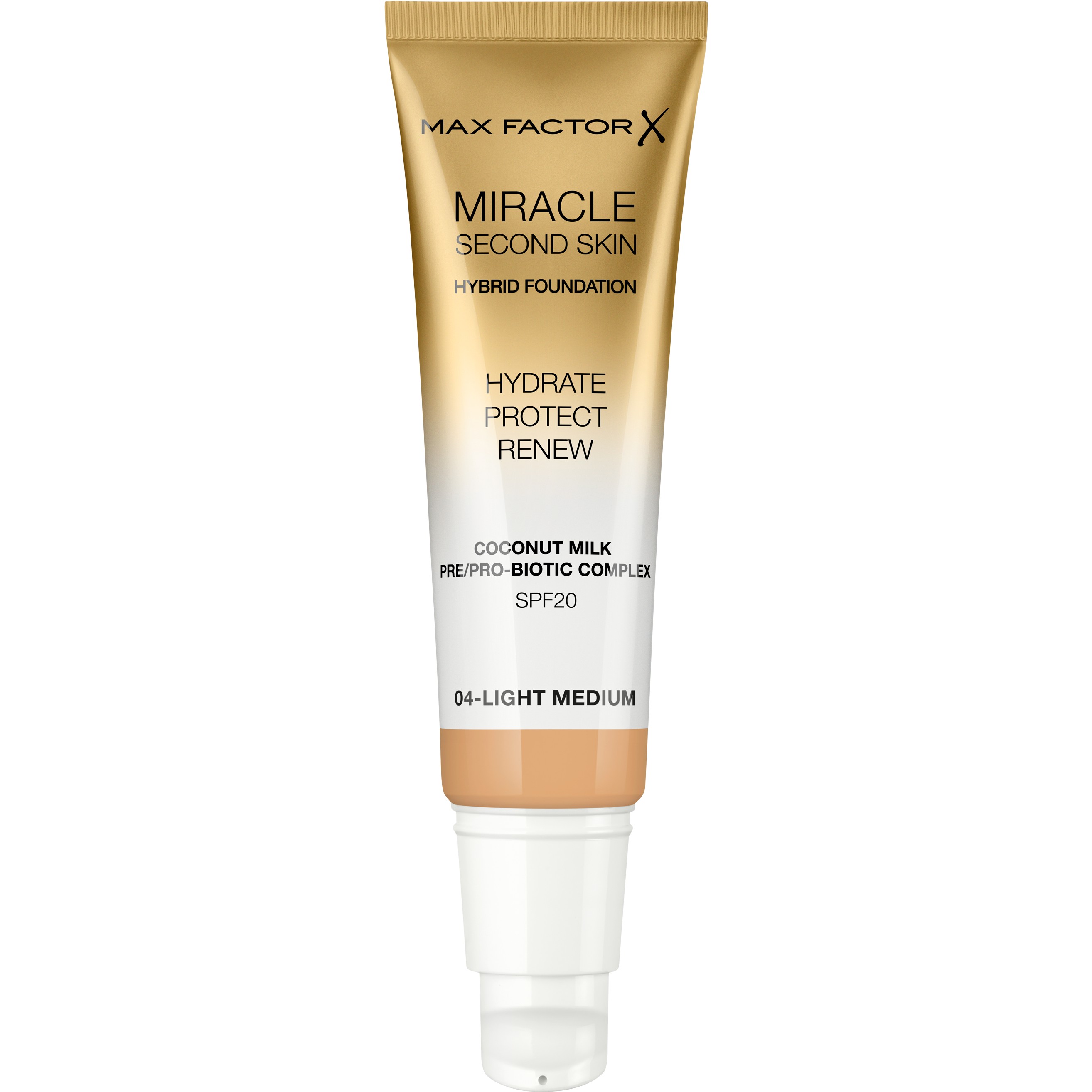 Тональное средство Max Factor Miracle Second Skin - уникальный гибридный тональный крем с натуральным кокосовым молоком для увлажнения на весь день. Невесомая, насыщенная, легко смешиваемая формула скользит над порами и дарит коже незаметное покрытие, которое выглядит как чистая кожа. Обогащенная пре и пробиотиками для защиты кожи, формула Miracle Second Skin клинически проверена на поддержание процесса обновления кожи и содержит SPF 20 для дополнительной защиты. Тональный крем подходит для всех типов кожи, включая чувствительную.