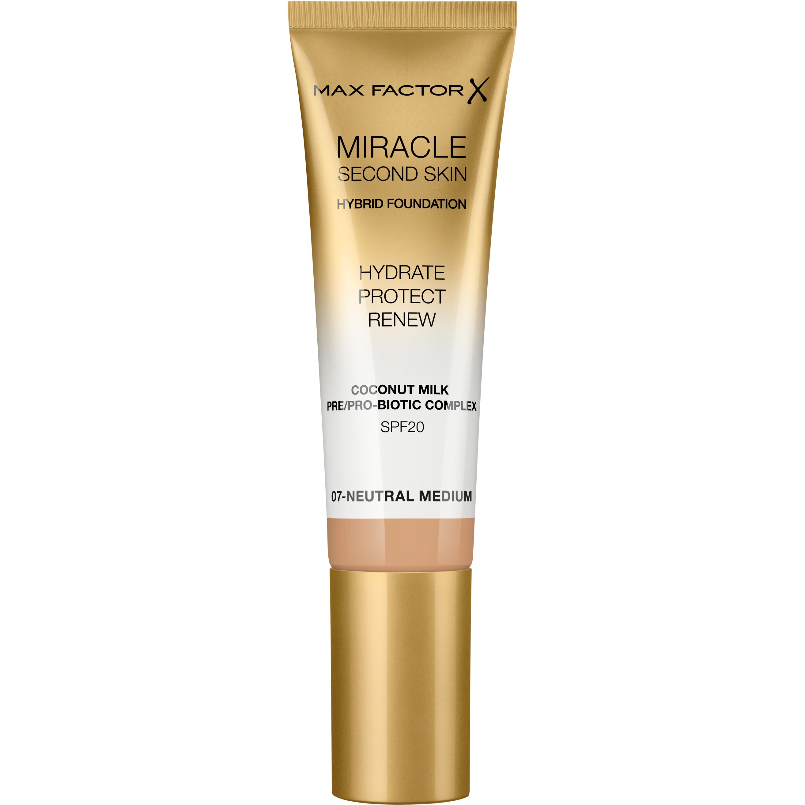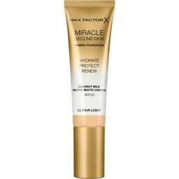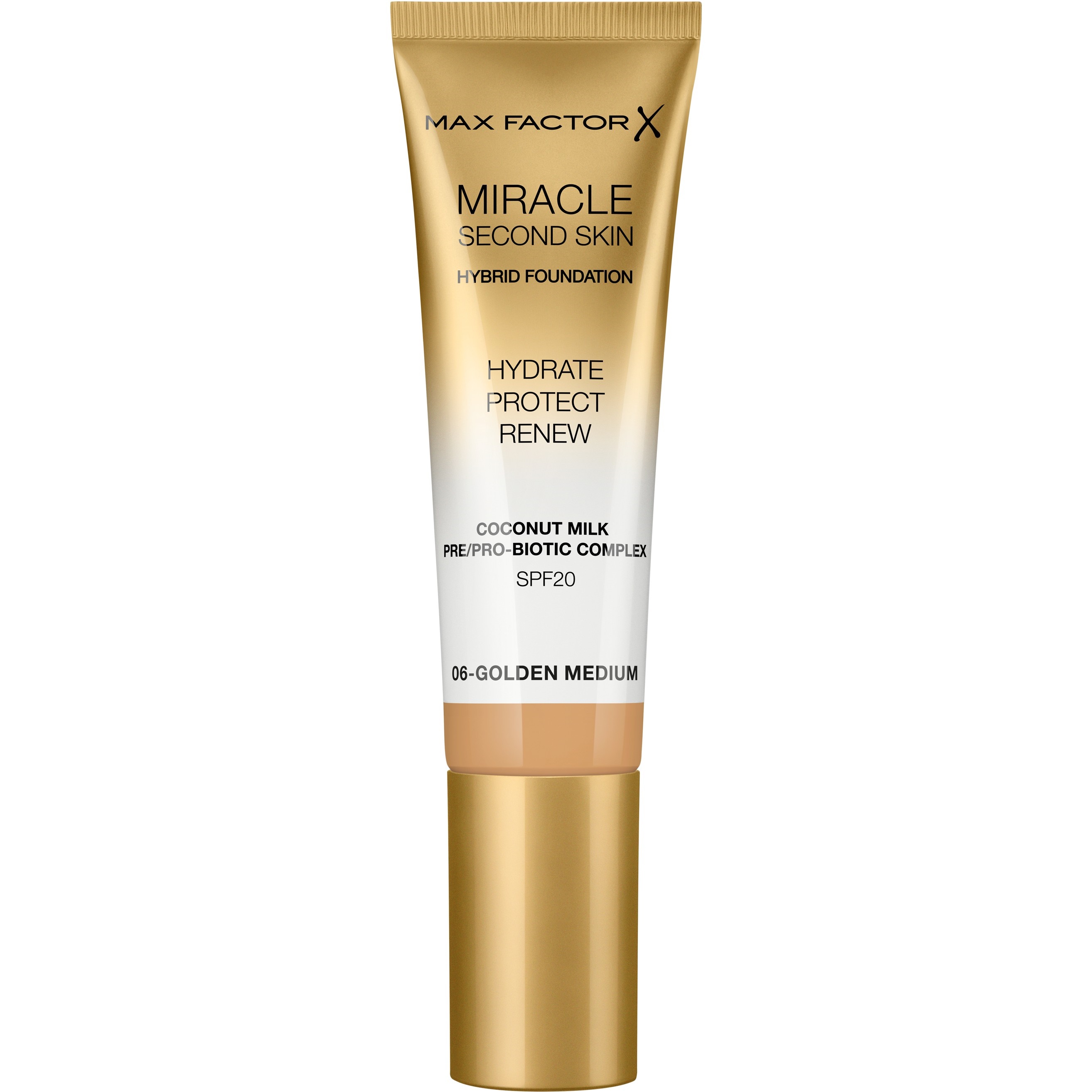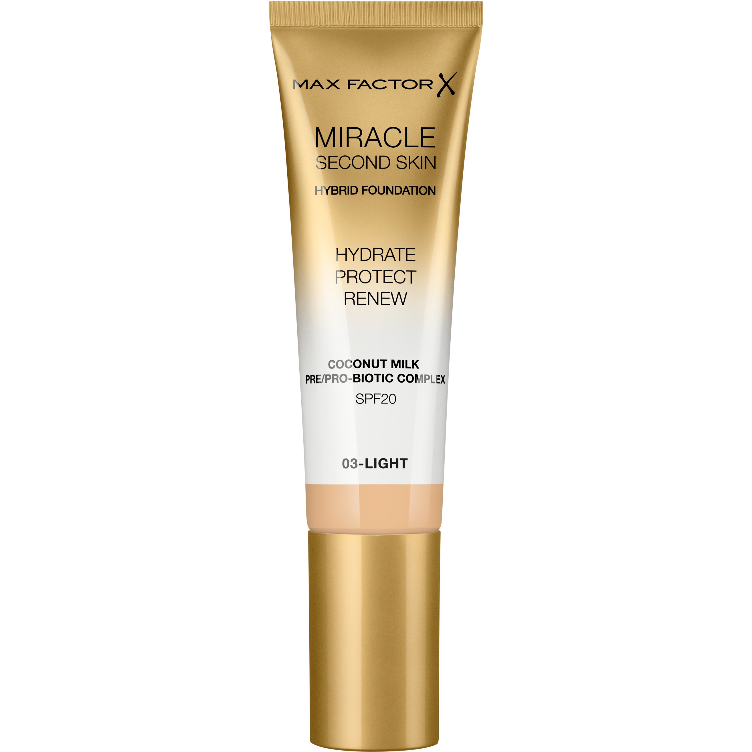Тональное средство Max Factor Miracle Second Skin - уникальный гибридный тональный крем с натуральным кокосовым молоком для увлажнения на весь день. Невесомая, насыщенная, легко смешиваемая формула скользит над порами и дарит коже незаметное покрытие, которое выглядит как чистая кожа. Обогащенная пре и пробиотиками для защиты кожи, формула Miracle Second Skin клинически проверена на поддержание процесса обновления кожи и содержит SPF 20 для дополнительной защиты. Тональный крем подходит для всех типов кожи, включая чувствительную.