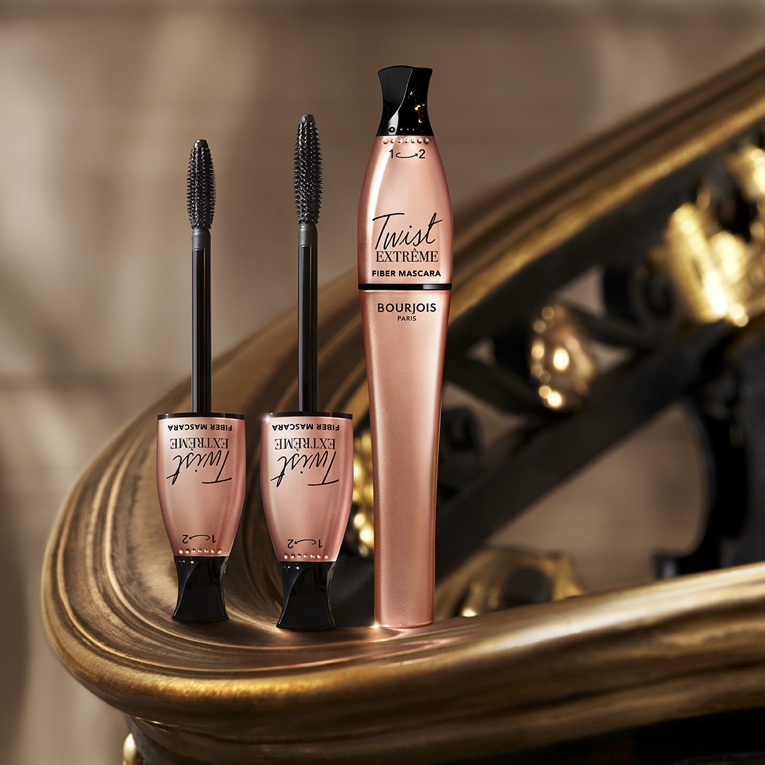 Тушь для ресниц с фибровыми микроволокнами Twist Extrême от Bourjois дарит сразу 3 эффекта, благодаря овальному силиконовому аппликатору, который меняет положение щетинок, создавая отдельные кисти для бесконечного удлинения, подкручивающего эффекта и для экстремального объема. Twist Extrême протестирована дерматологами и офтальмологами, подходит для чувствительных глаз и для использования с контактными линзами.