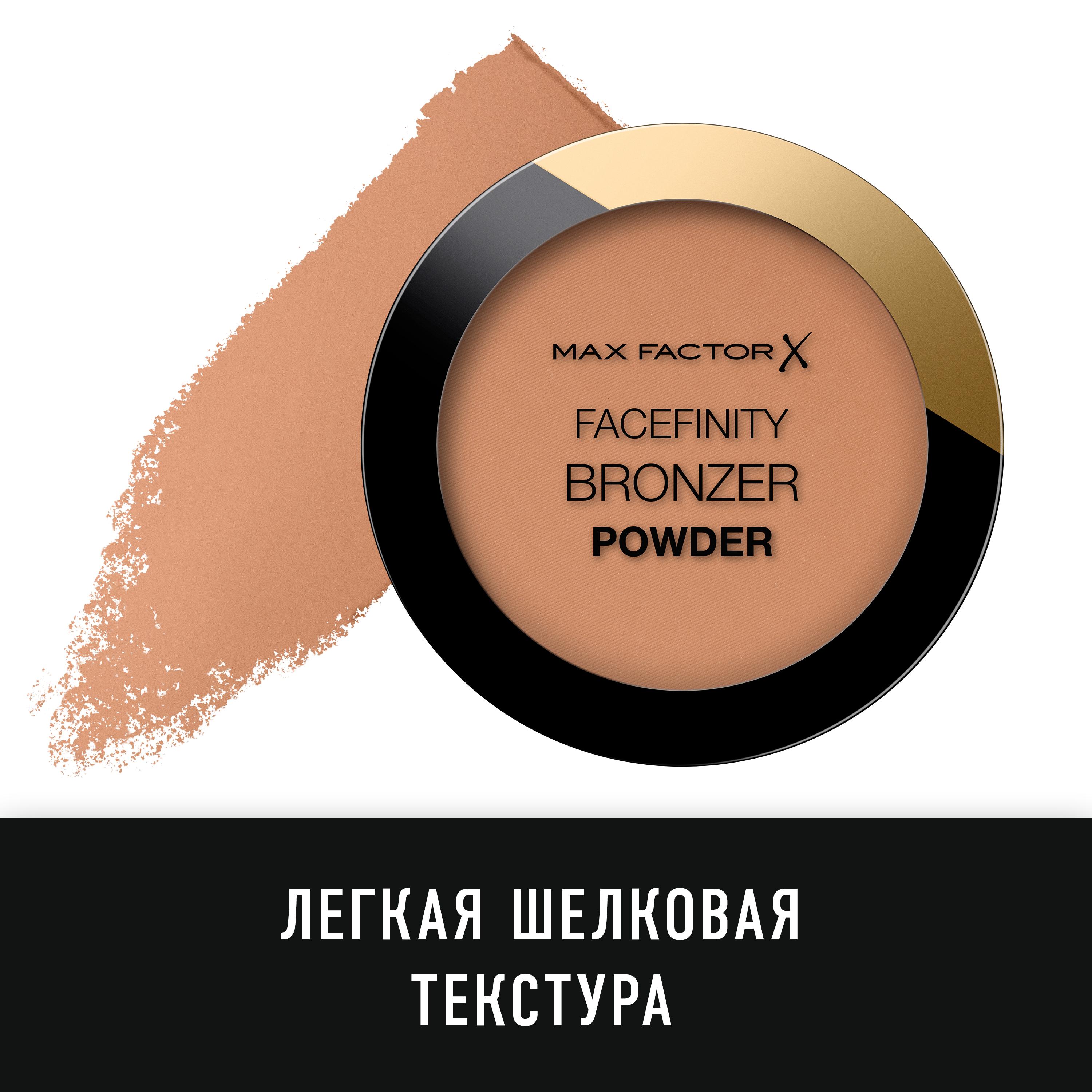 Новый бронзер Facefinity от Max Factor помогает добиться невесомого эффекта естественного загара на весь день. Ультралегкий пудровый финиш, который придаст вашей коже натуральный летний загар. Доступная в одном универсальном оттенке, бронзирующая пудра легко растушевывается и не забивается в поры и складки.
