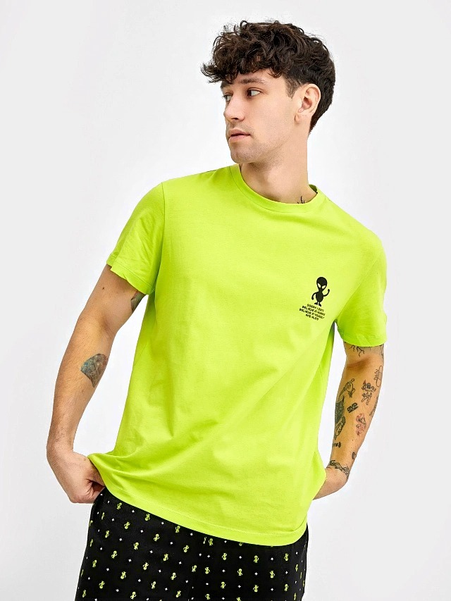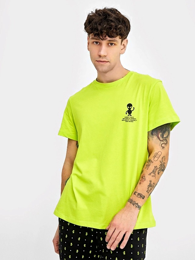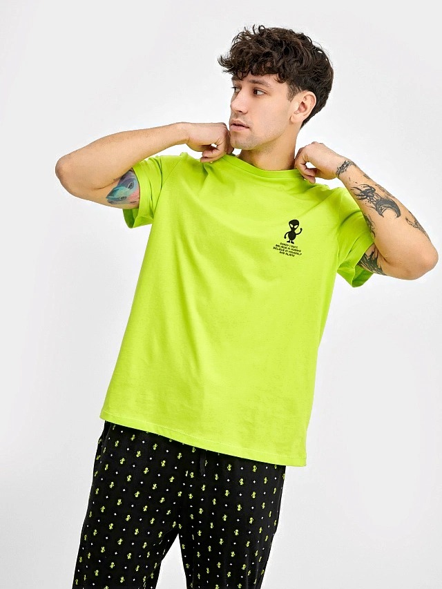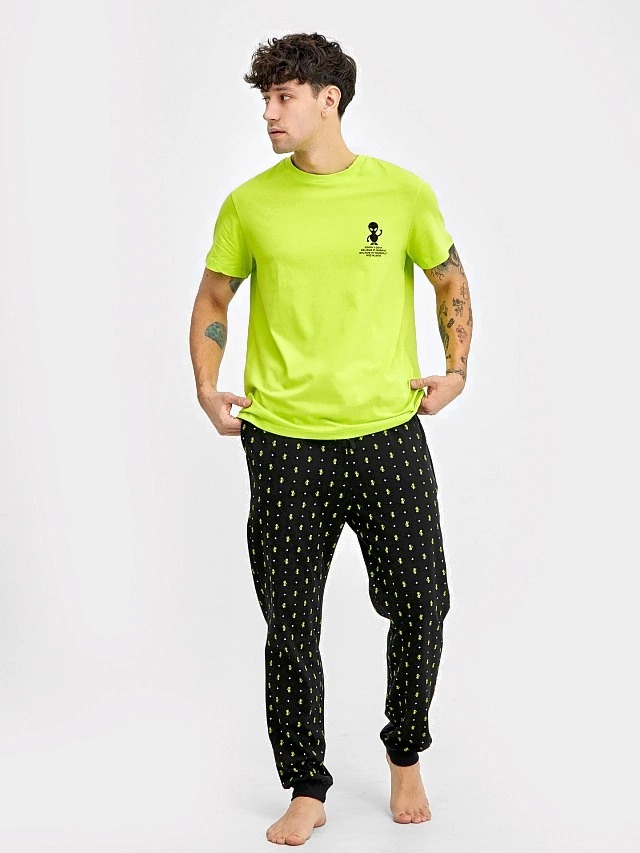 Комплект домашней одежды Mark Formelle 591028 (р.104-94-182/188, лайм/пришельцы на черном)