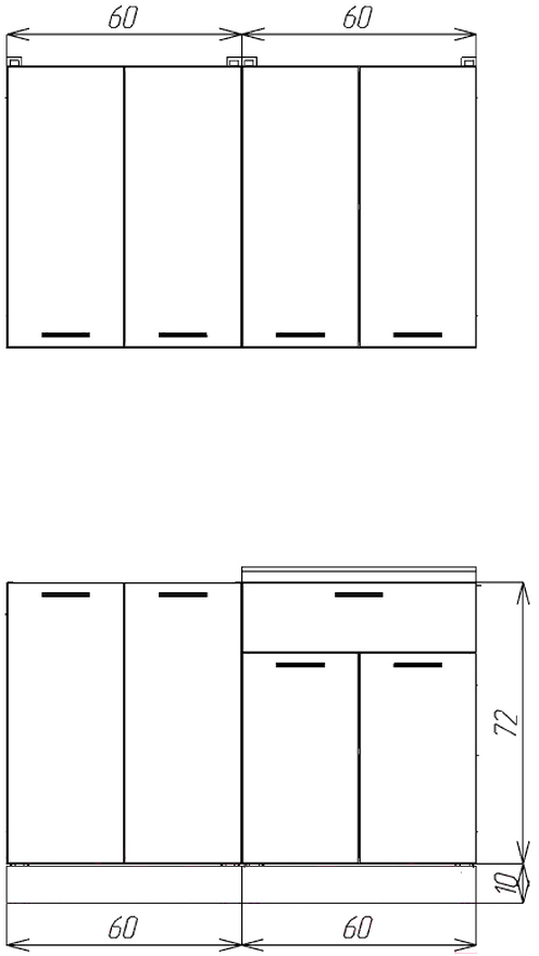- Глубина нижних шкафов 60 см (46 см глубина по корпусу)