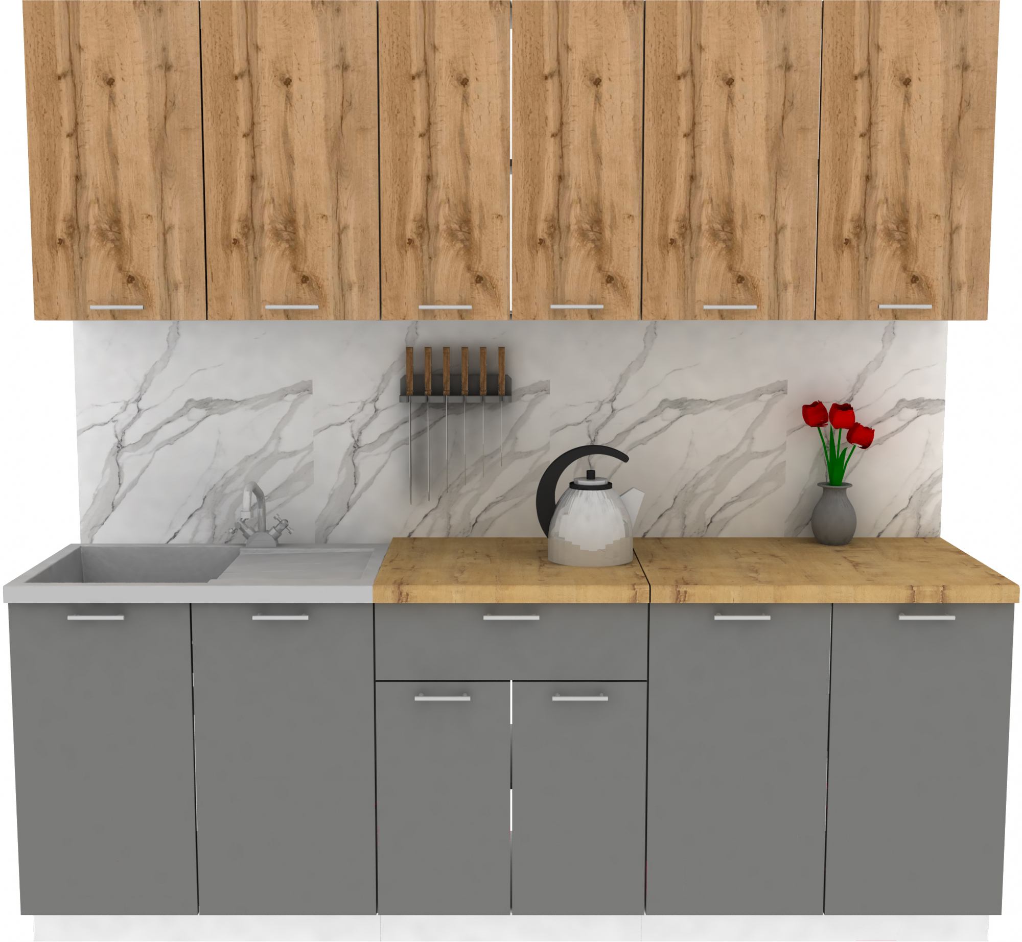 Кухонный гарнитур Eligard Lion 2.2 (дуб натуральный/дымчатый алмаз/дуб бунратти)