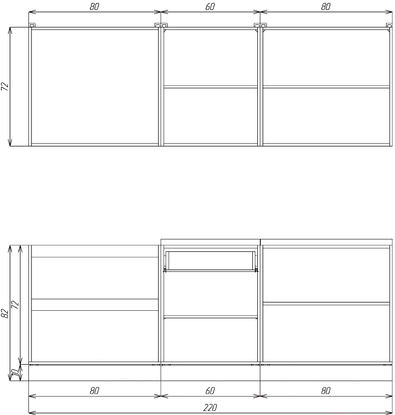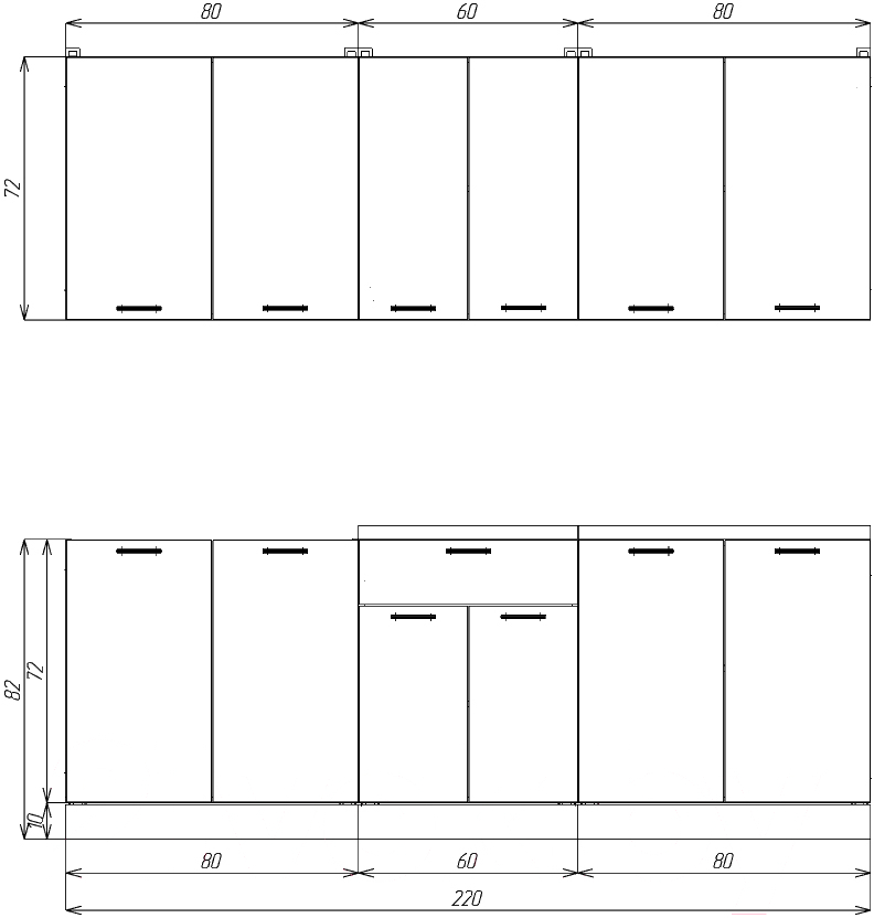 • Высота нижних шкафов 82 см