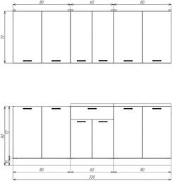• Длина кухни 220 см