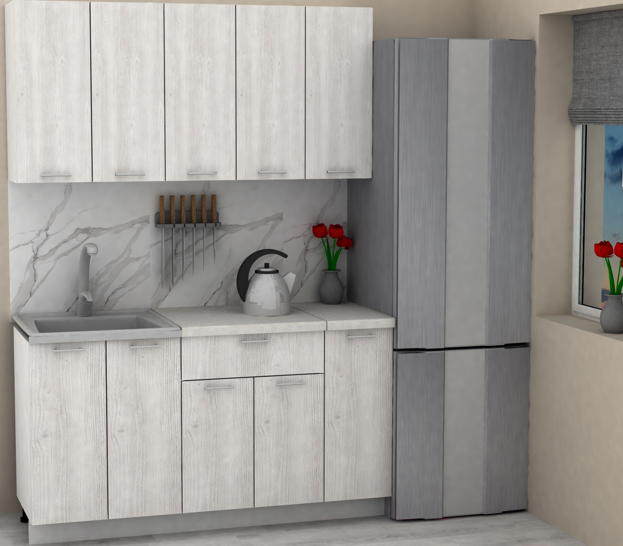 - Высота верхних шкафов 72 см