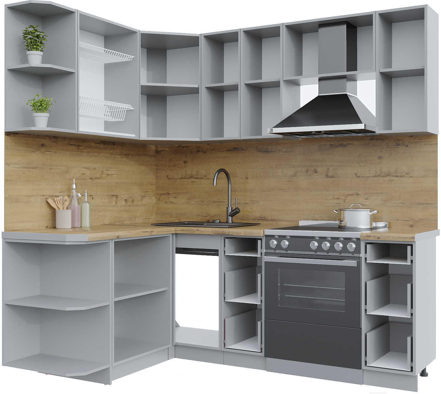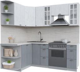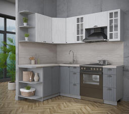 Кухонный гарнитур Интерлиния Берес 1.5x2.1 левая (дуб полярный/дуб серый/травертин серый)