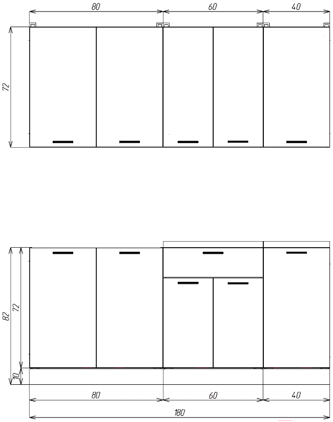 - Глубина нижних шкафов 60 см (46 см глубина по корпусу)