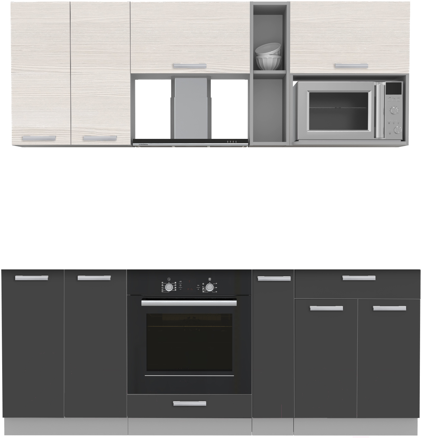 - Глубина нижних шкафов 60 см (48 см — глубина по корпусу)