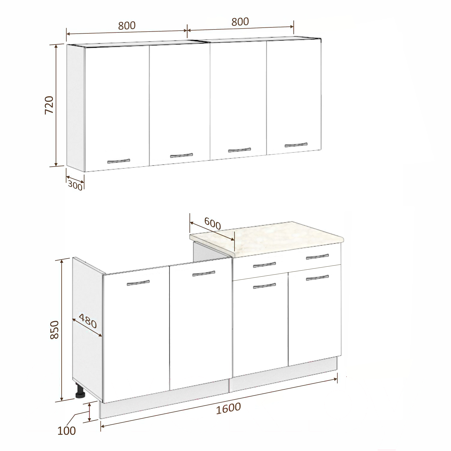 - Высота нижних шкафов 85 см