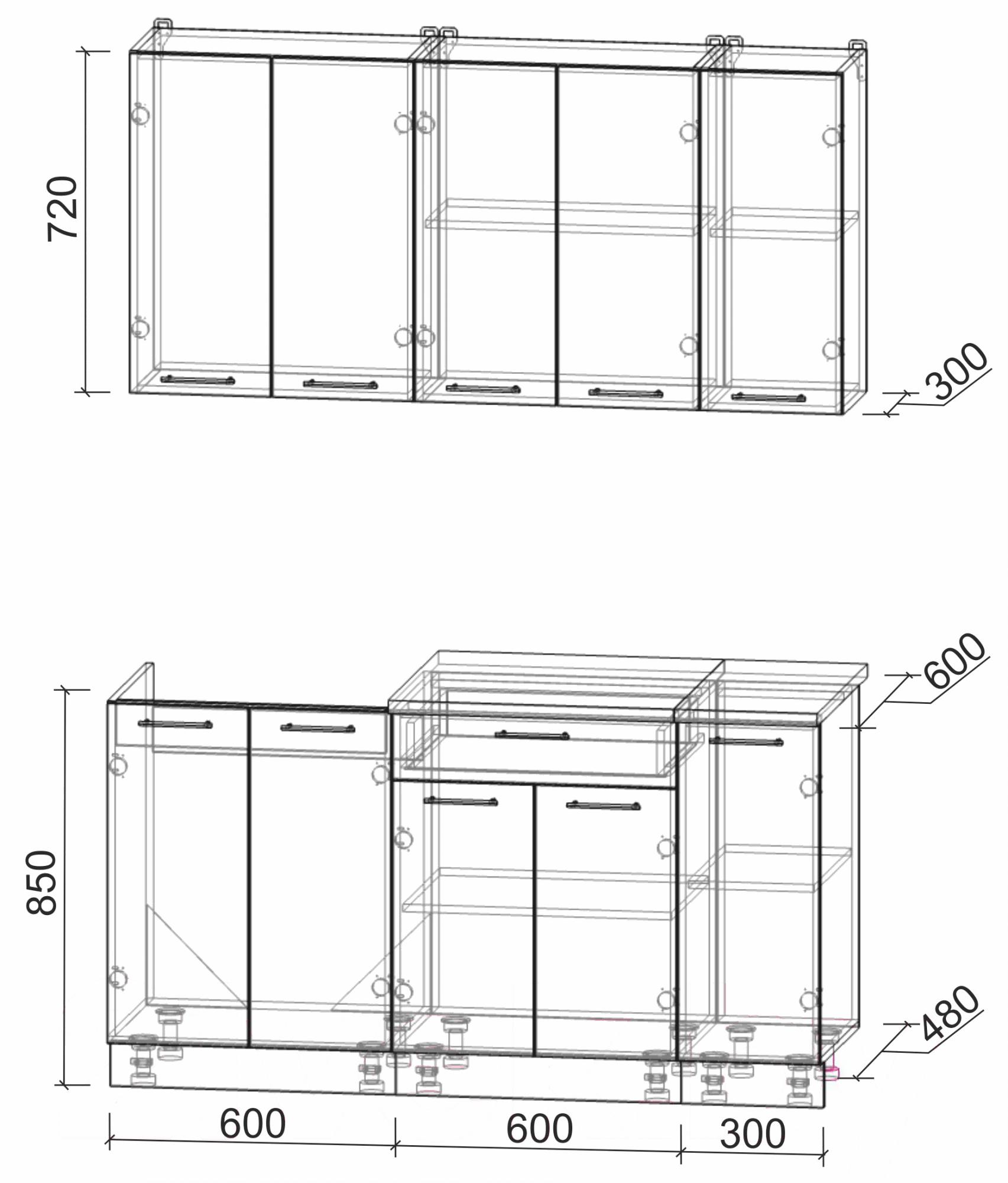 • Высота нижних шкафов 85 см