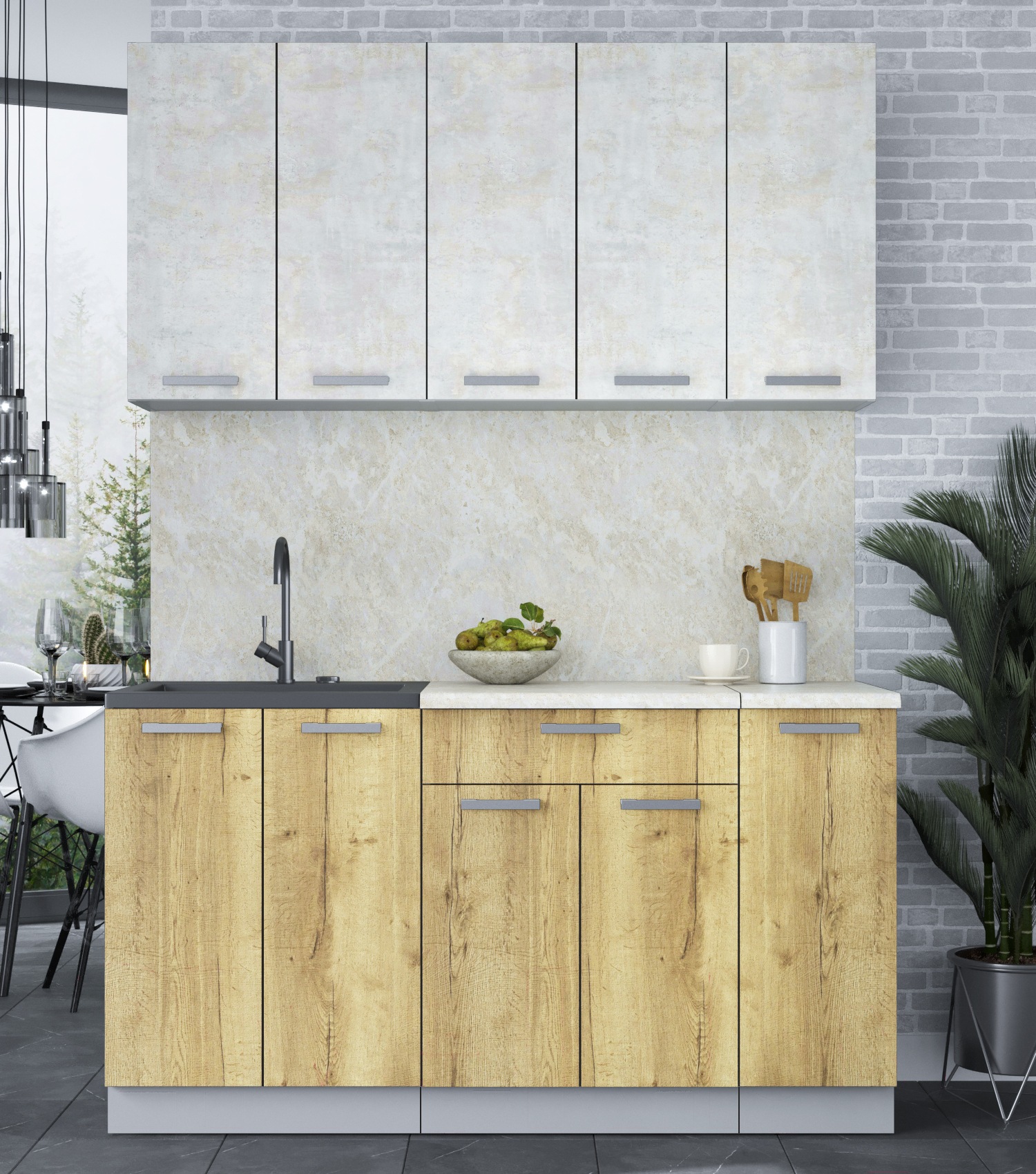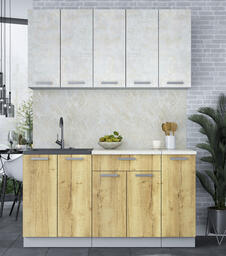Кухонный гарнитур Интерлиния Мила Лайт 1.5 (бетон лайт/дуб золотой)