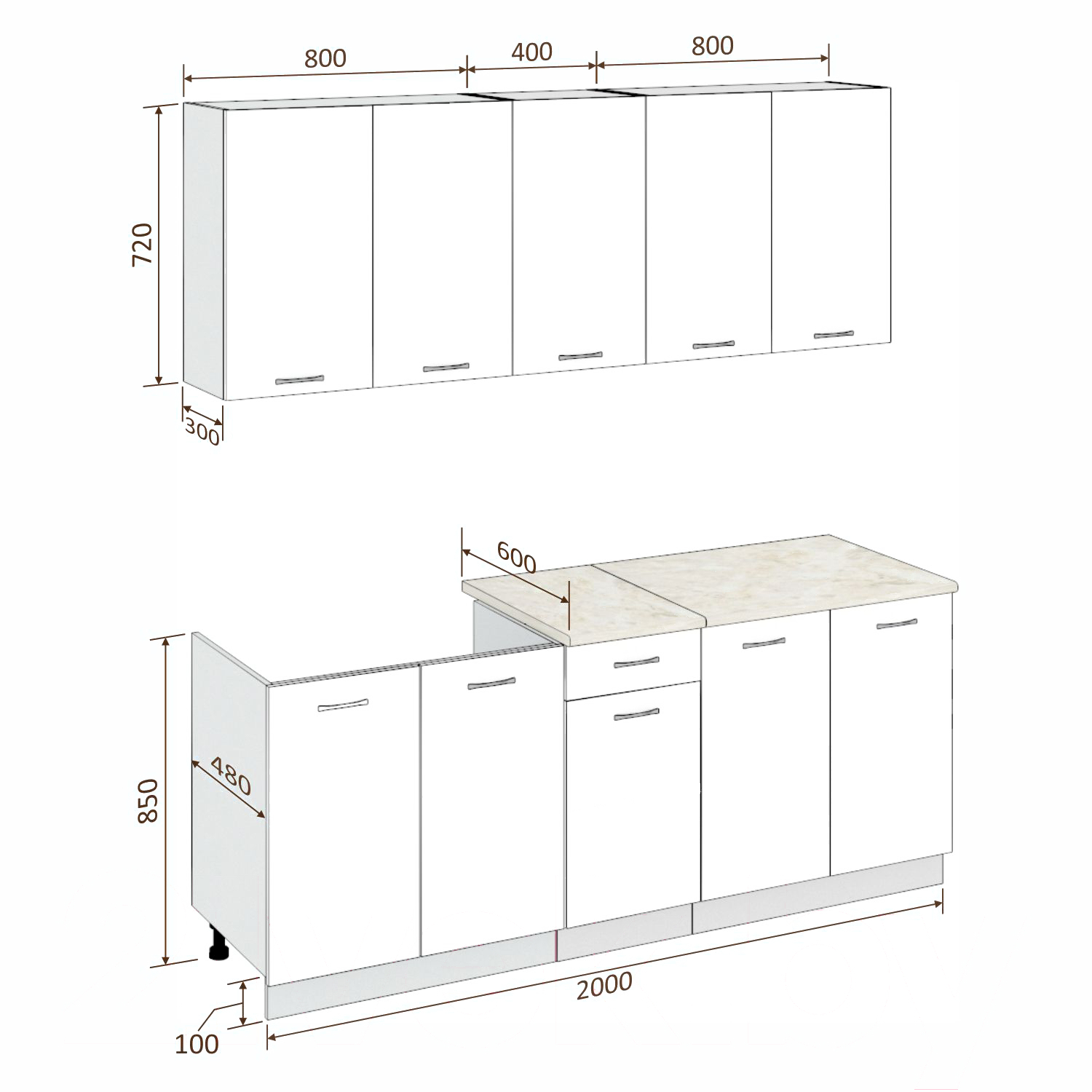 - Высота нижних шкафов 85 см