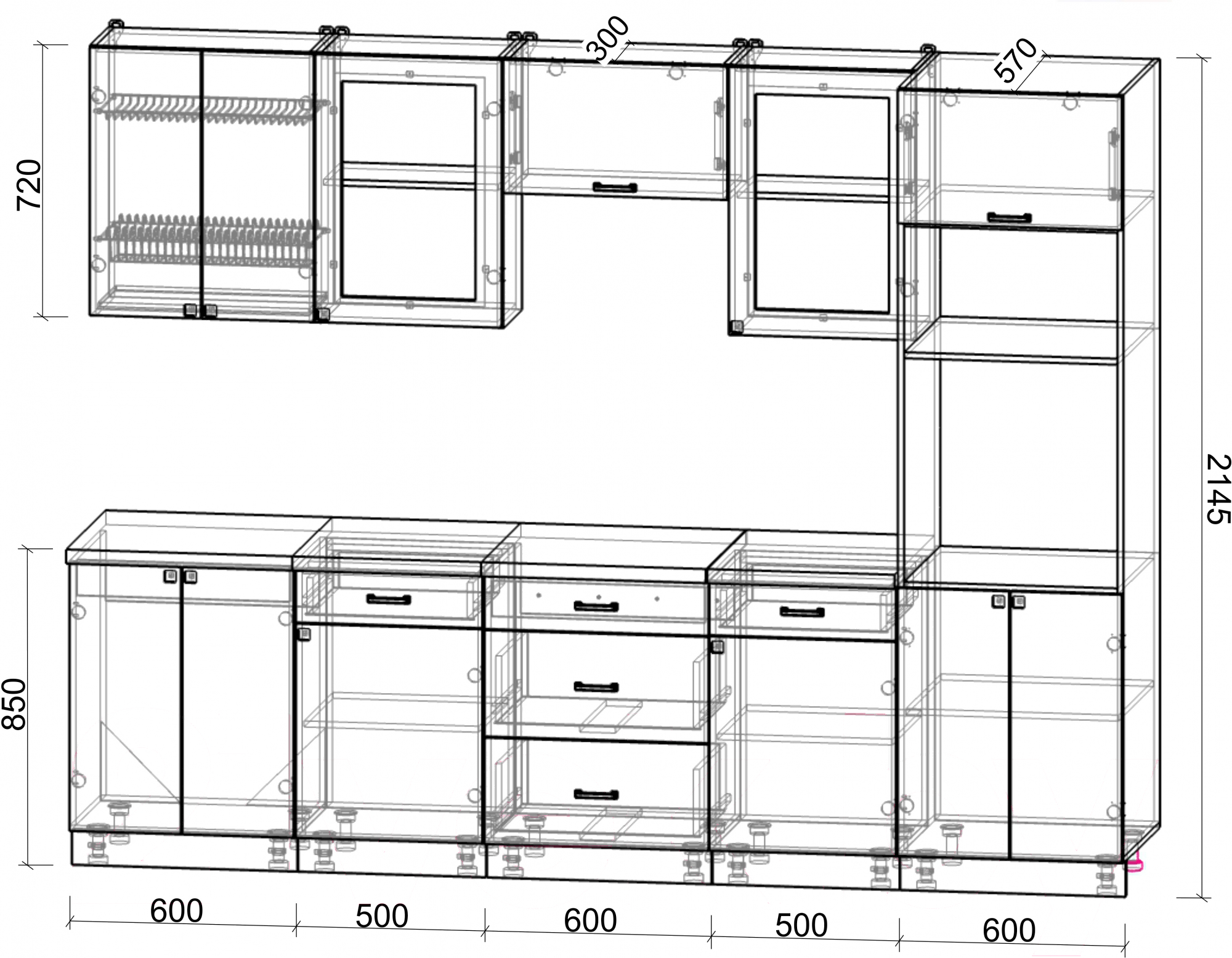 - Глубина нижних шкафов 60 см (48 см - глубина по корпусу)