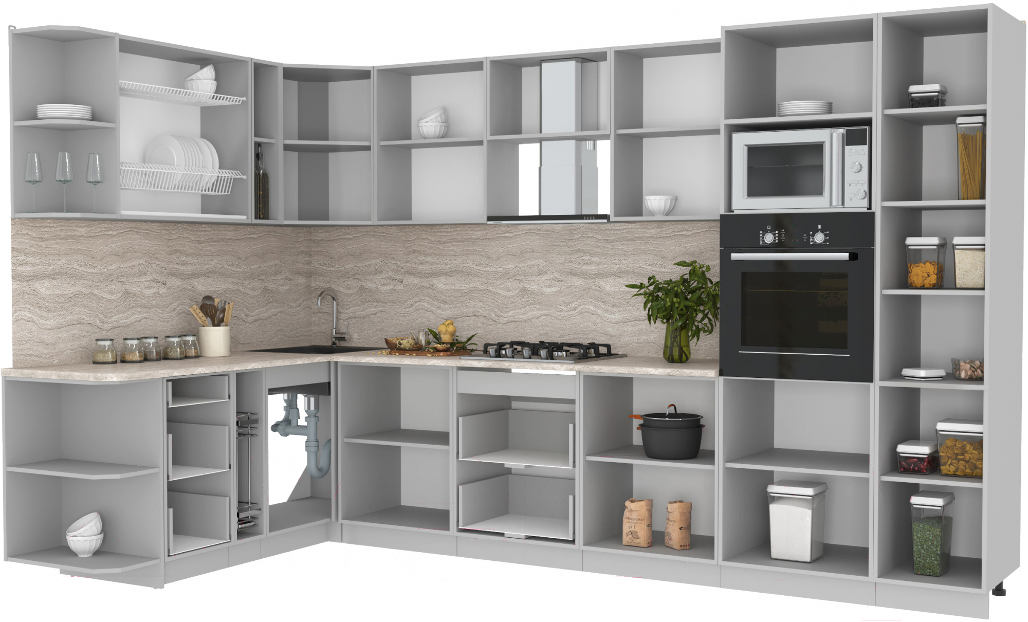 - Открытые полки сверху (4 шт.), снизу (2 шт.)