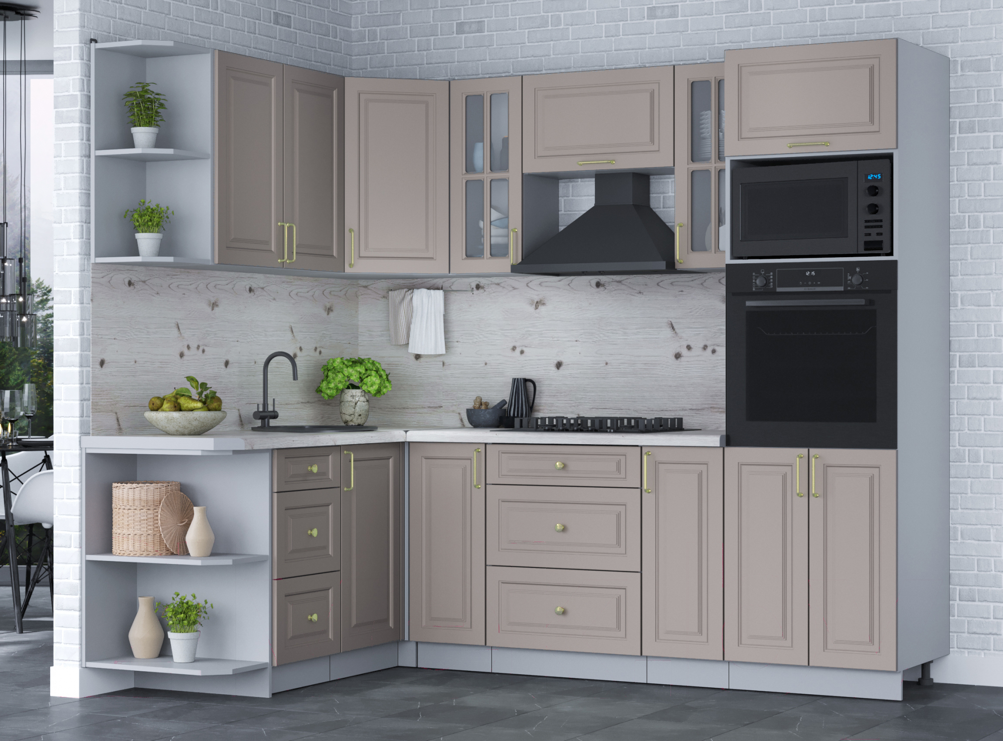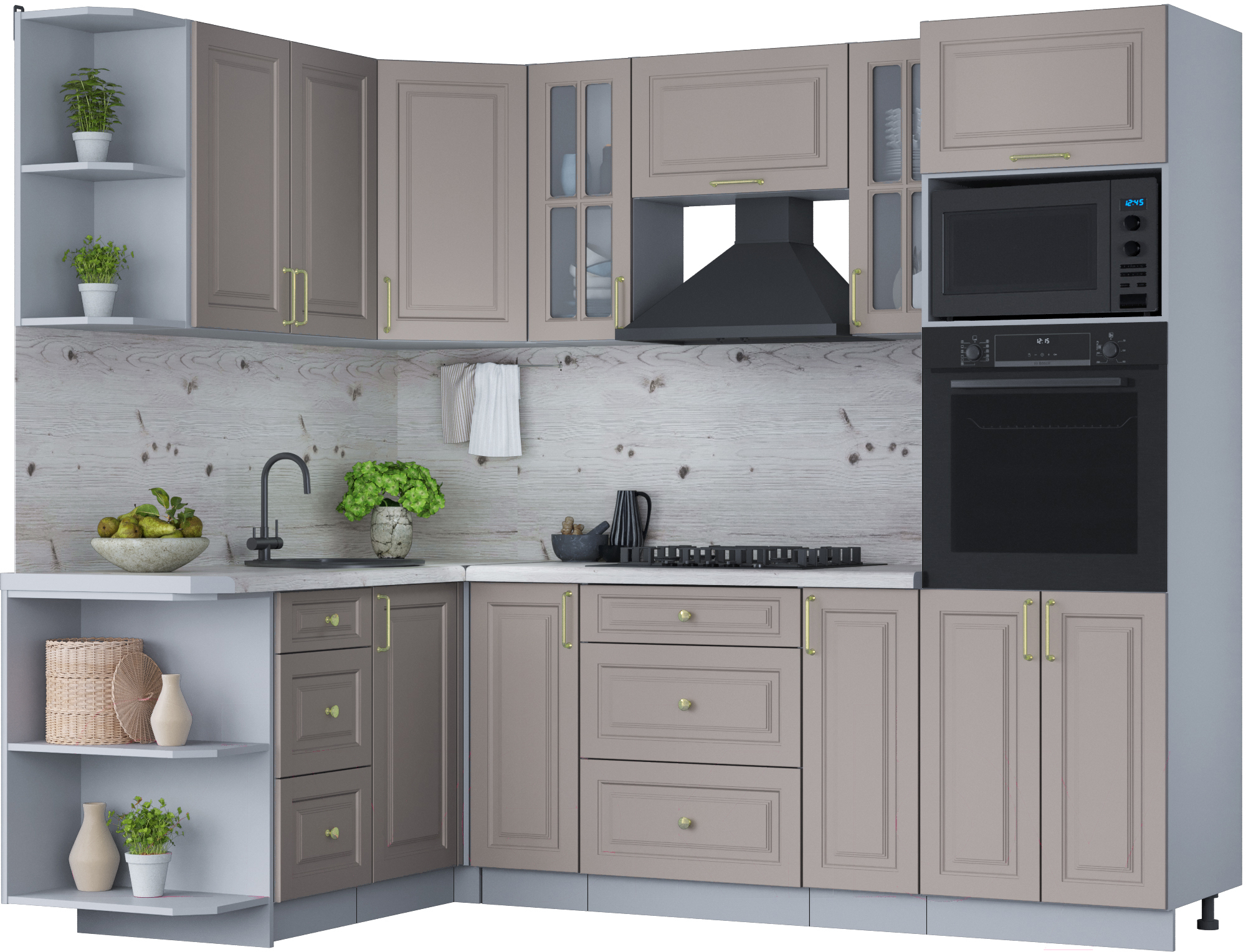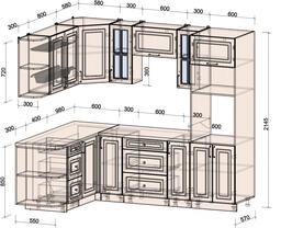 • Конструкция кухни угловая