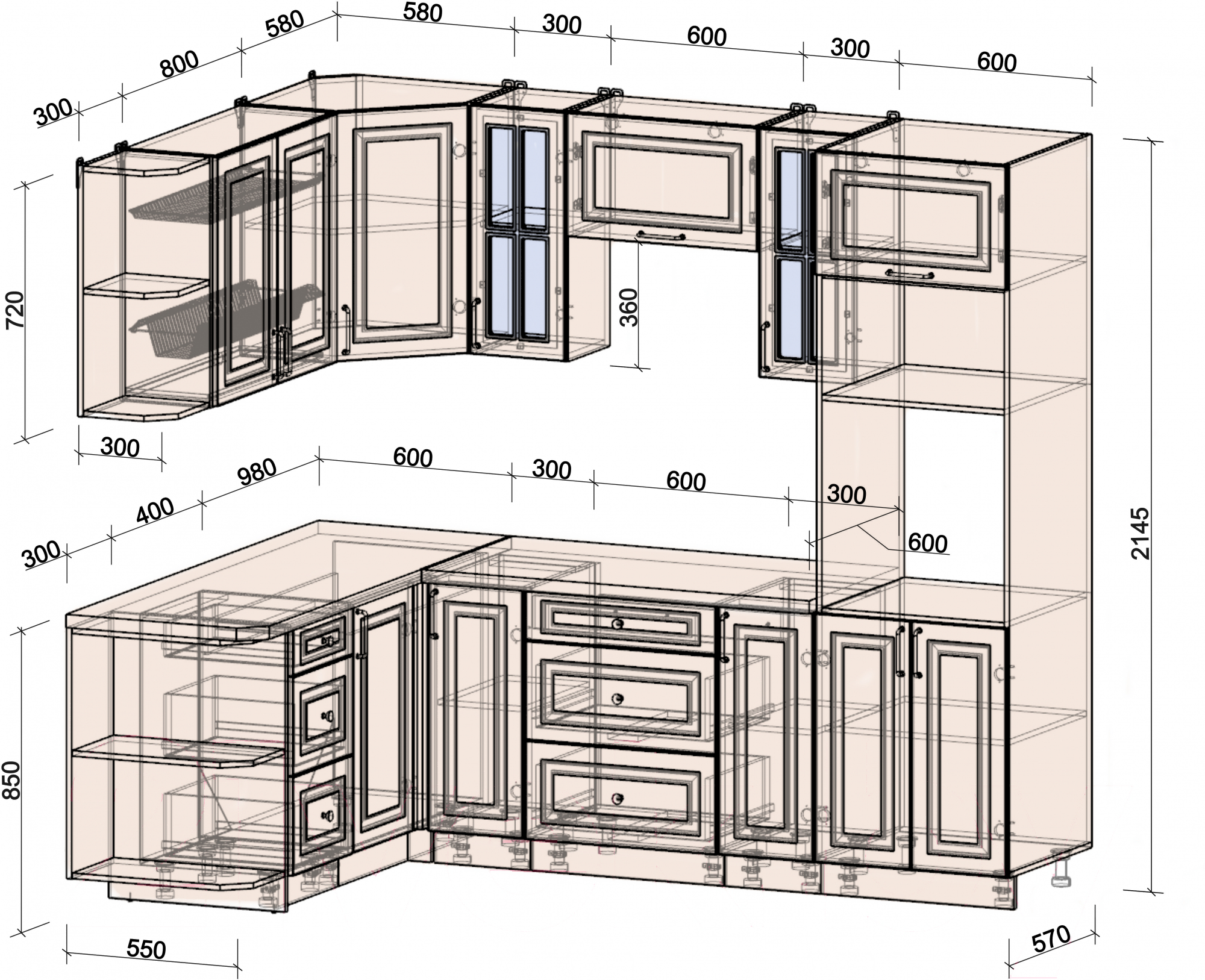 • Высота нижних шкафов 85 см