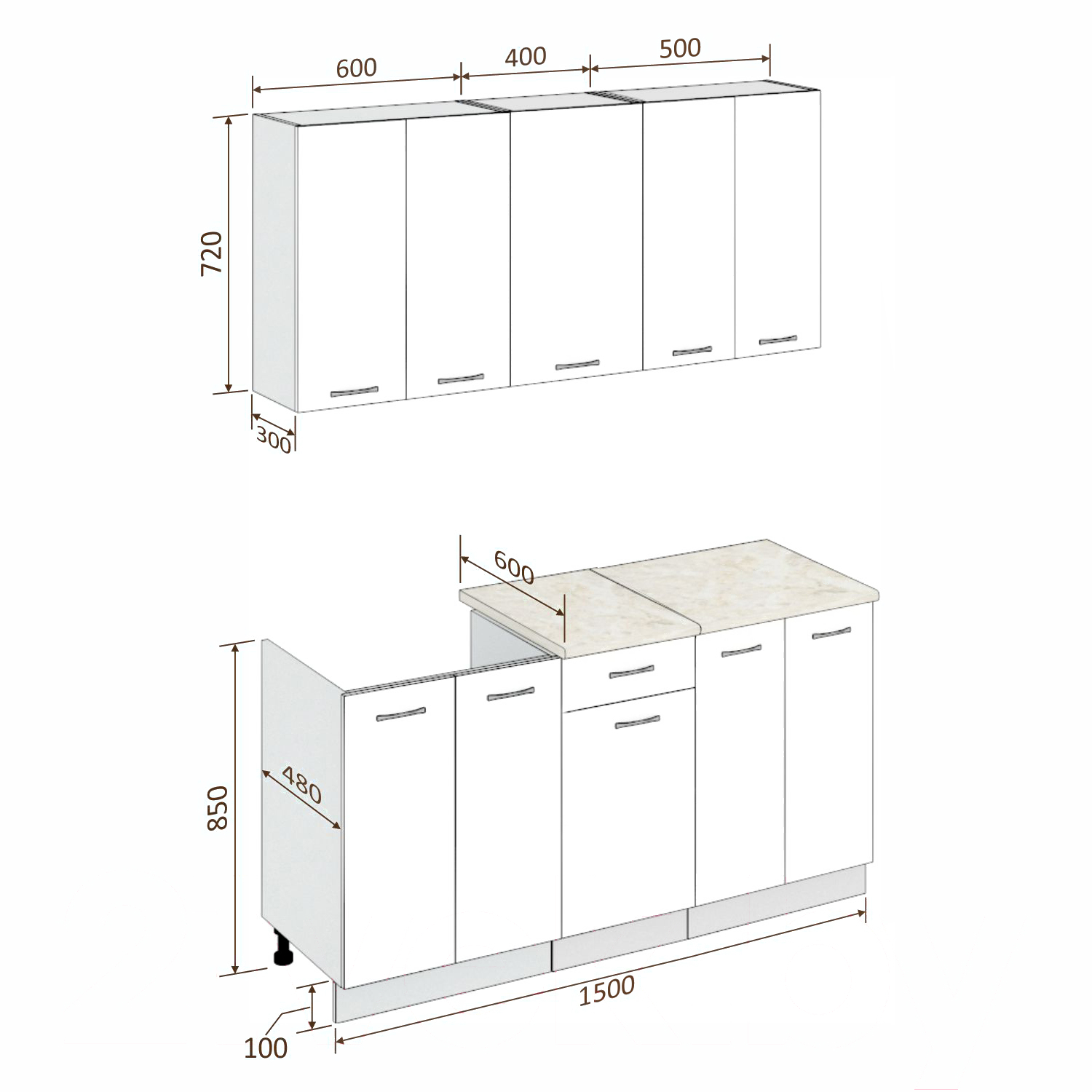 - Высота нижних шкафов 85 см