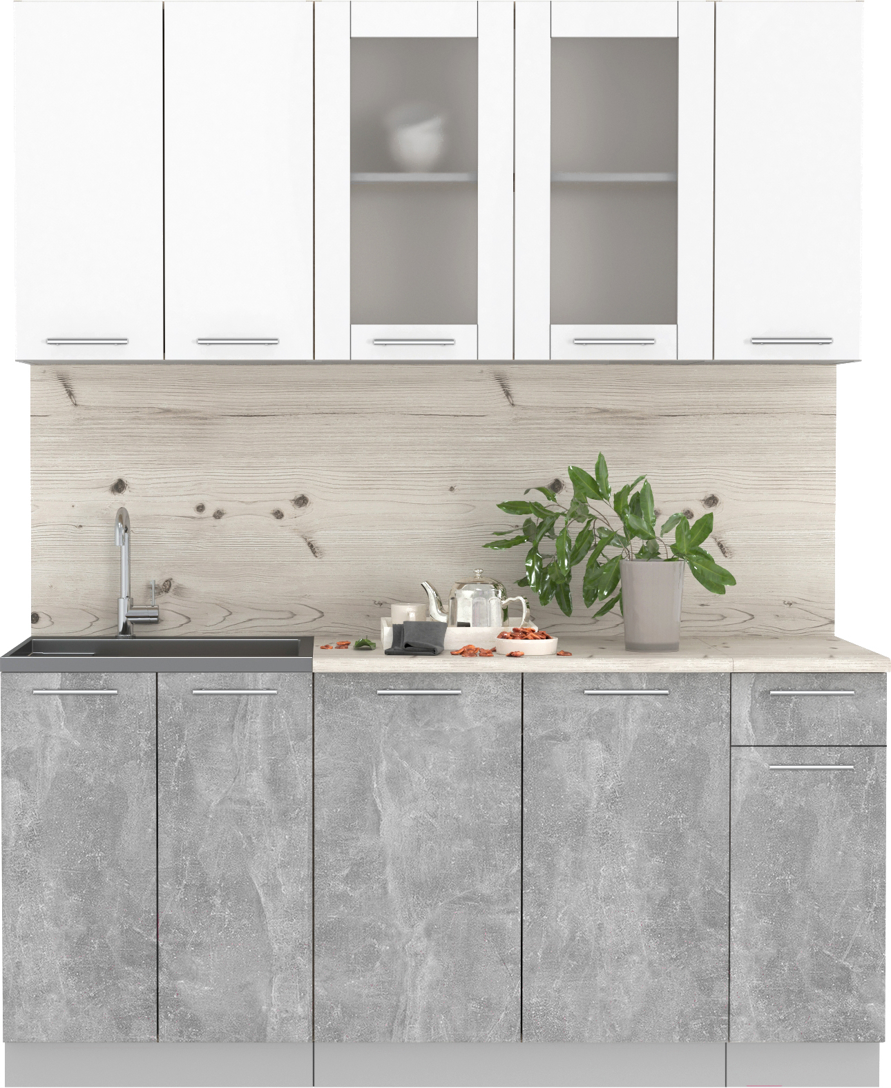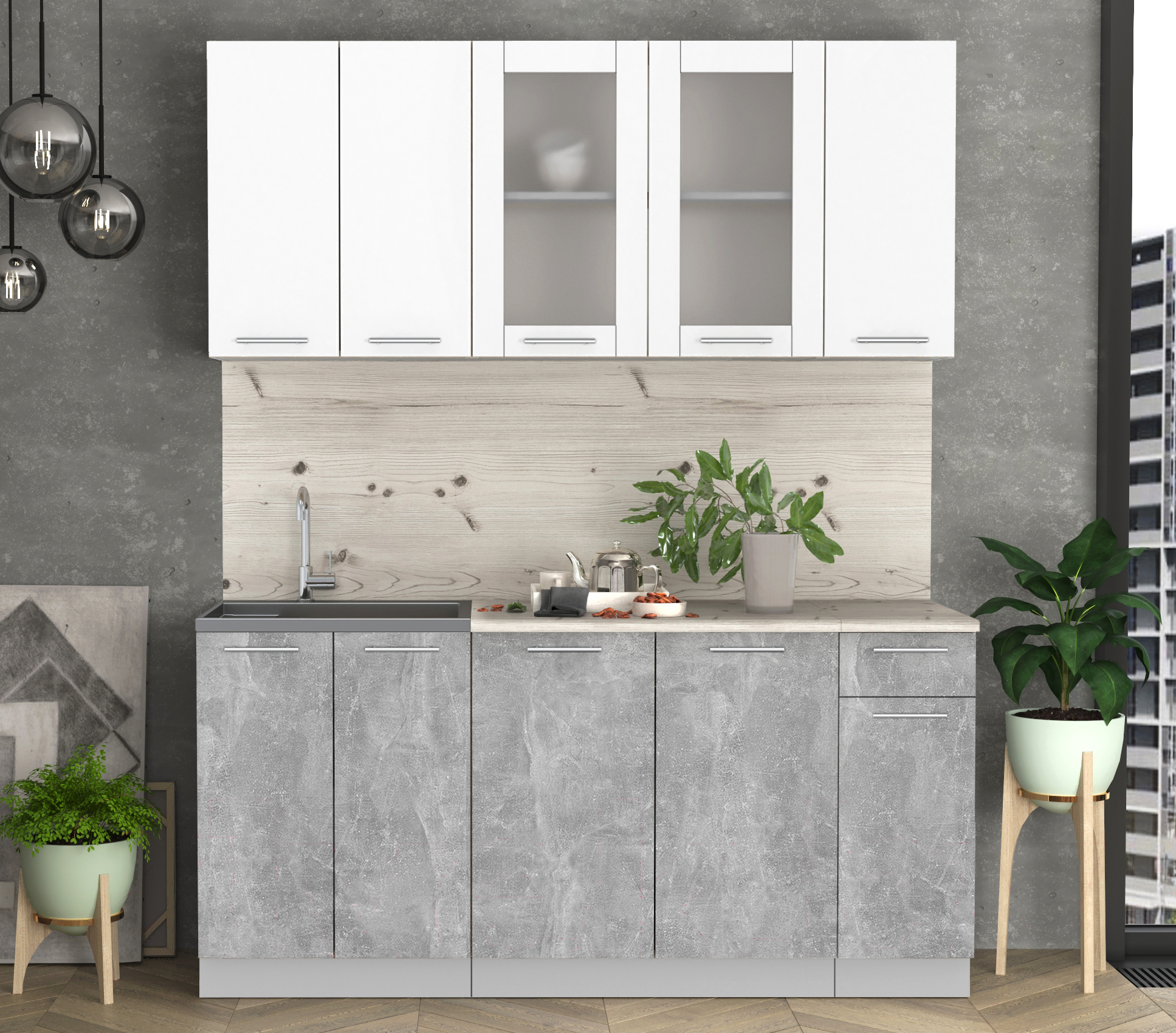 Кухонный гарнитур Интерлиния Мила 17-60 (бетон/белый платинум глянец/бискайская сосна)