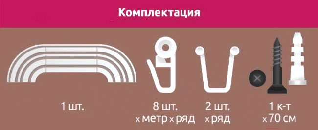 - Количество колец/крючков 8 шт. на 1 м длины карниза