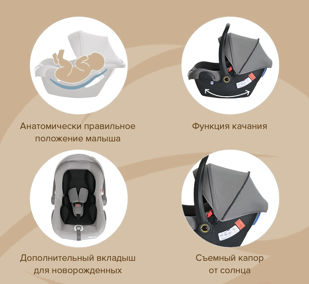 • Дополнительные элементы ручка для переноса, анатомический вкладыш, защита от солнца, адаптер