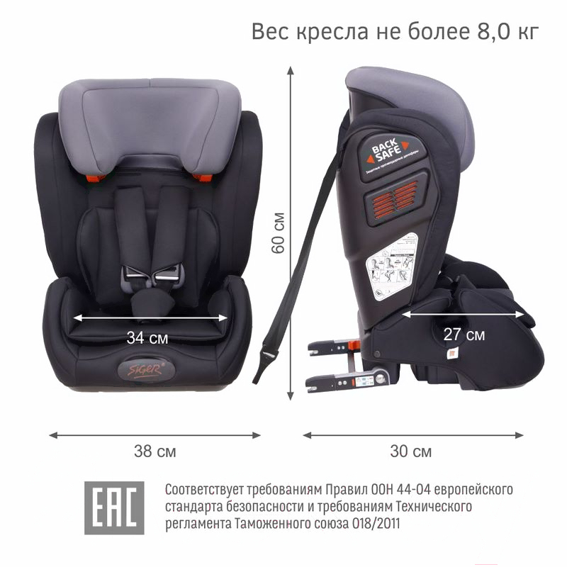 • Возможности регулировки высота внутренних ремней, высота подголовника (2 позиции), натяжение ремней
