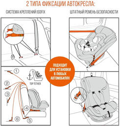 • Крепление кресла Isofix, штатный ремень автомобиля