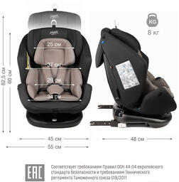 • Возможности регулировки наклон спинки (3 положения), высота подголовника (11 положений), натяжение ремней