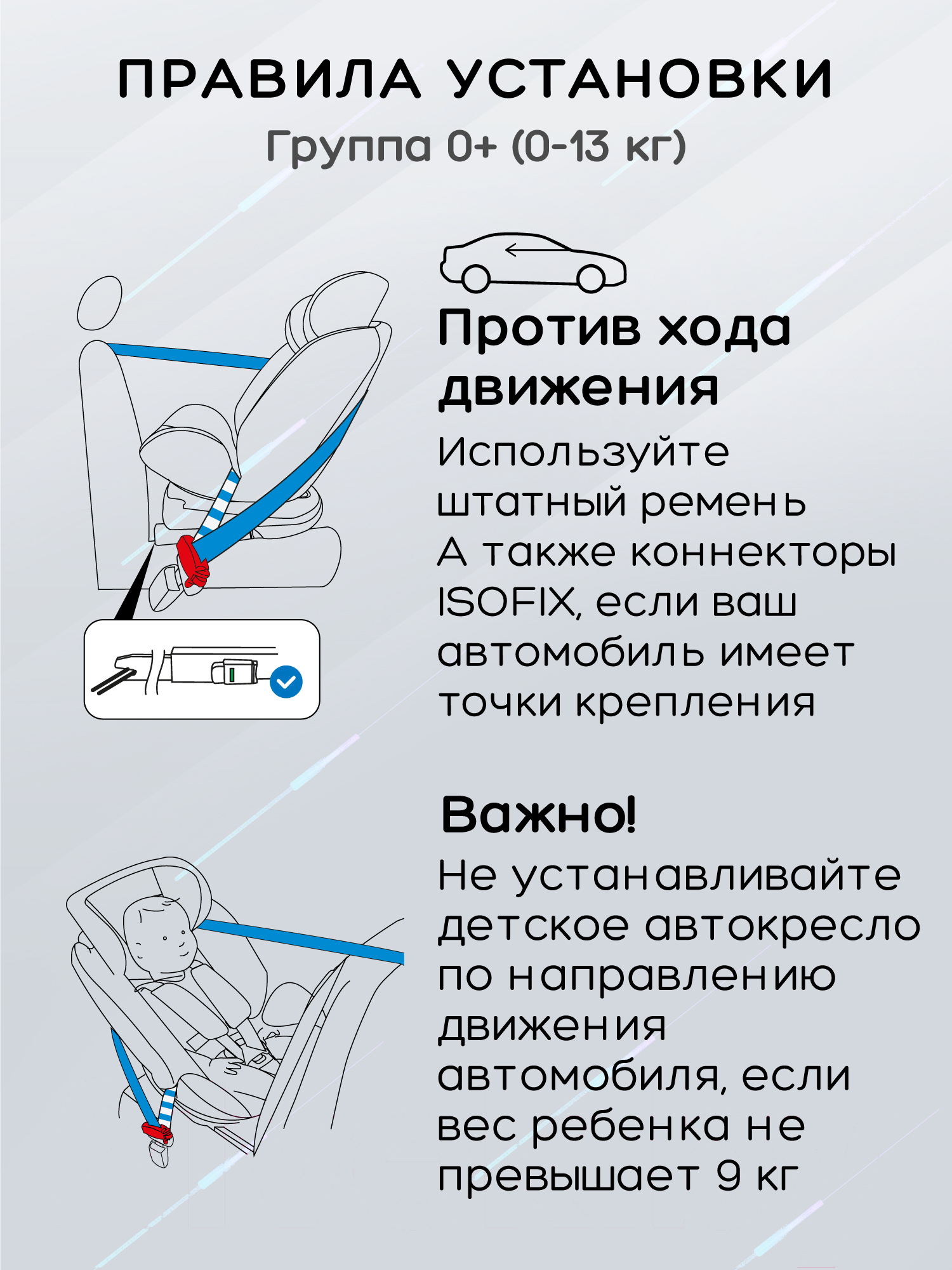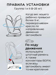 • Крепление кресла Isofix, штатный ремень автомобиля