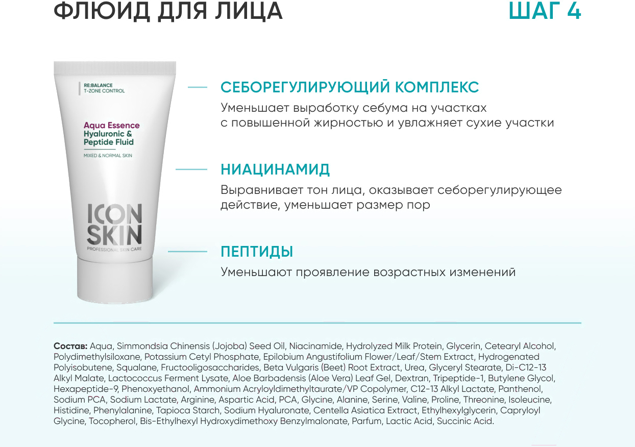 • Активные ингредиенты гиалуроновая кислота, экстракт алоэ вера, пантенол, ниацинамид, пептиды, AHA-кислоты, аминокислоты